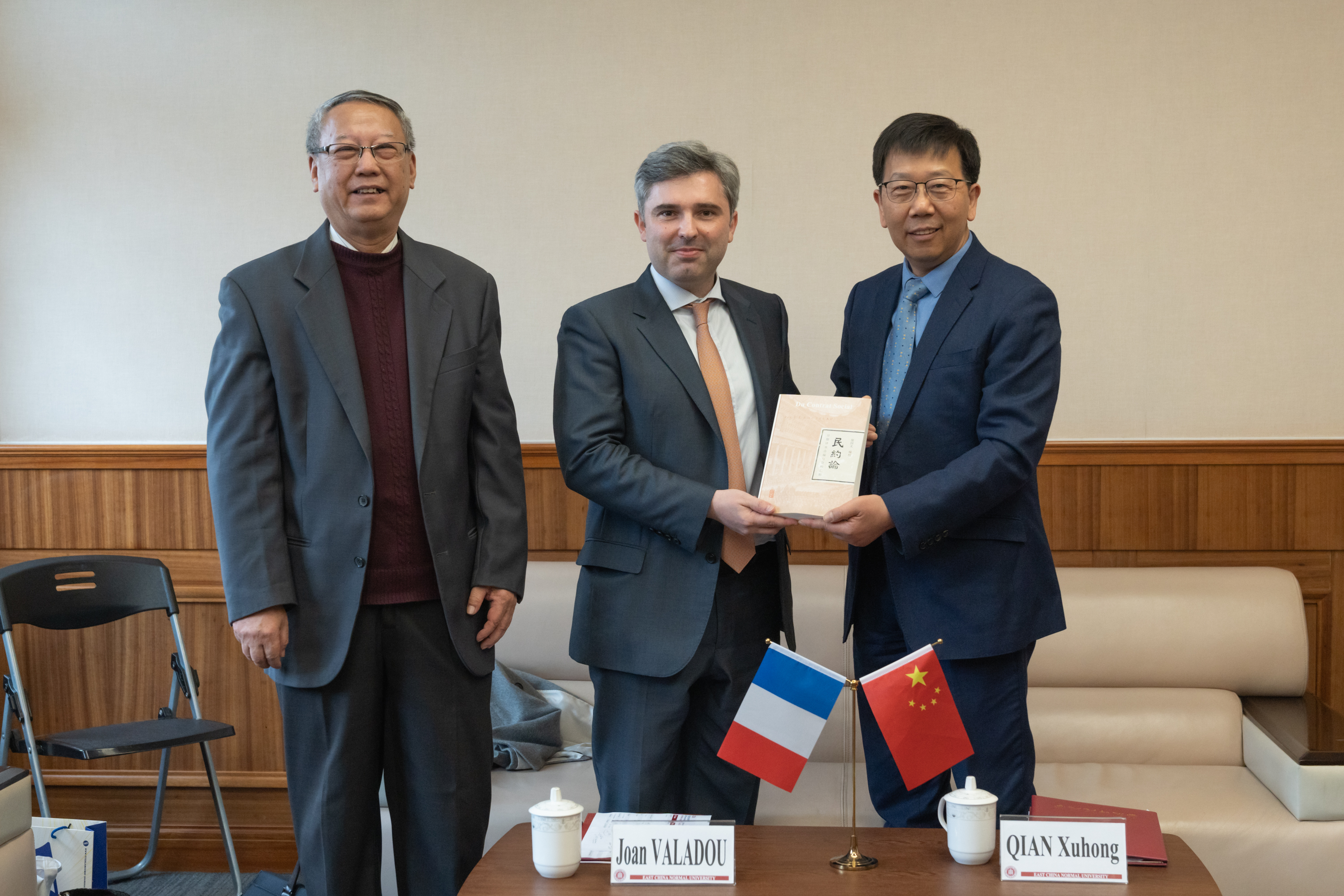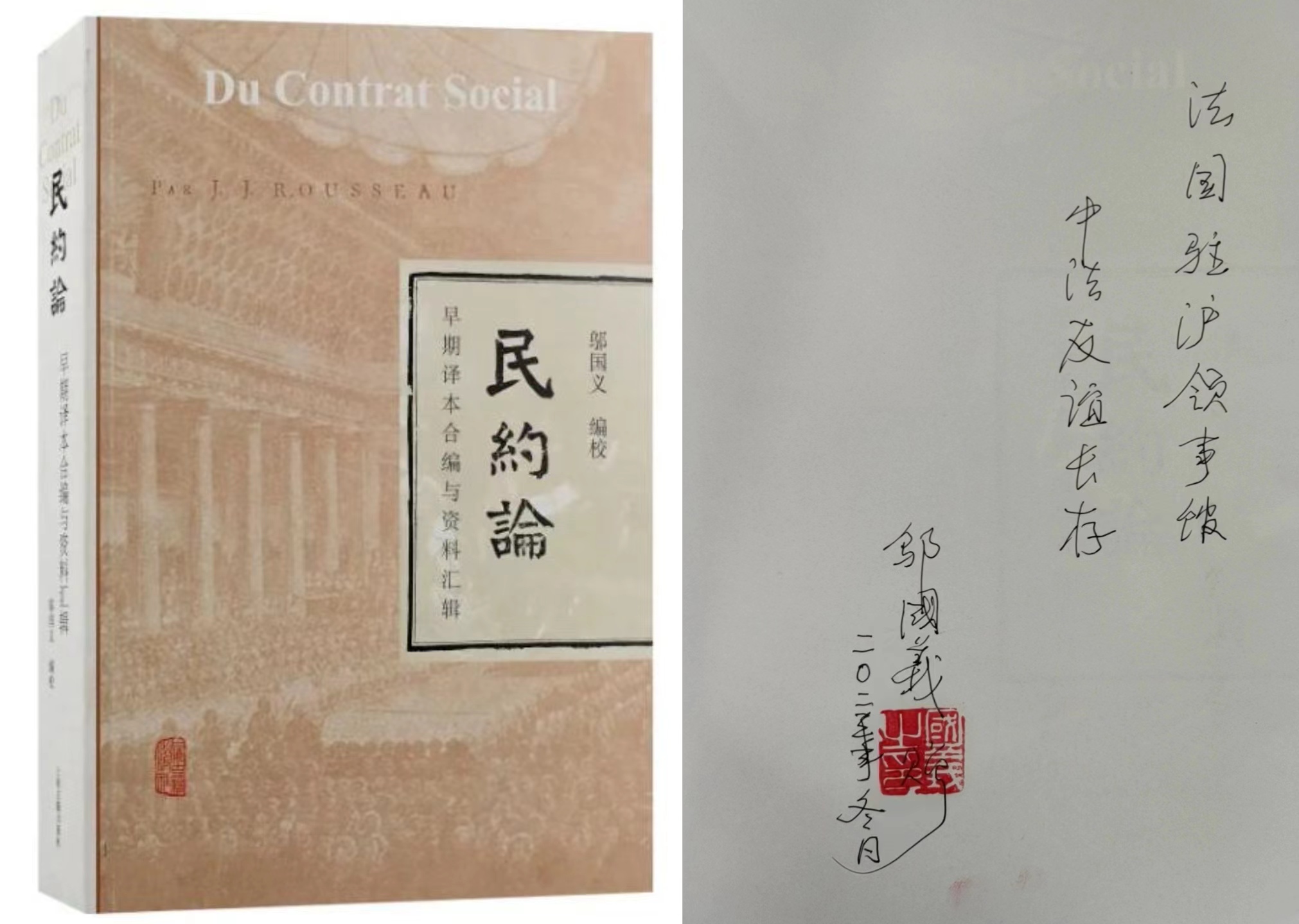 完美(中国)官方校长钱旭红向总领事赠送由历史学系邬国义教授编校的著作《<民约论>早期译本合编与资料汇辑》