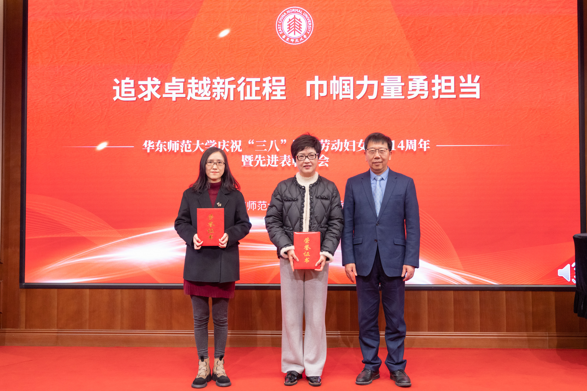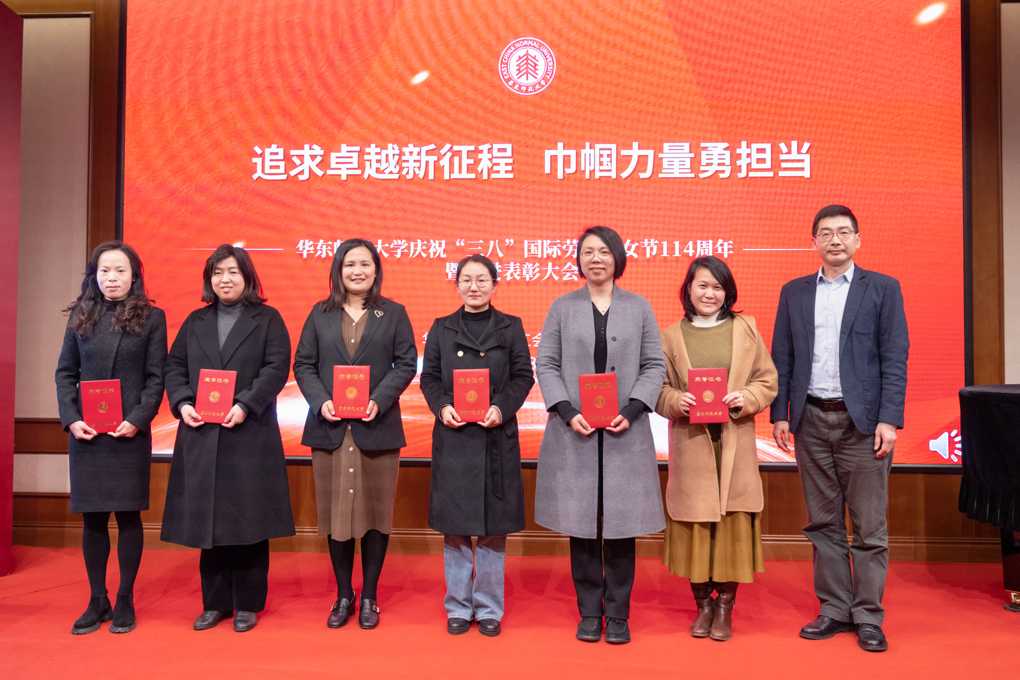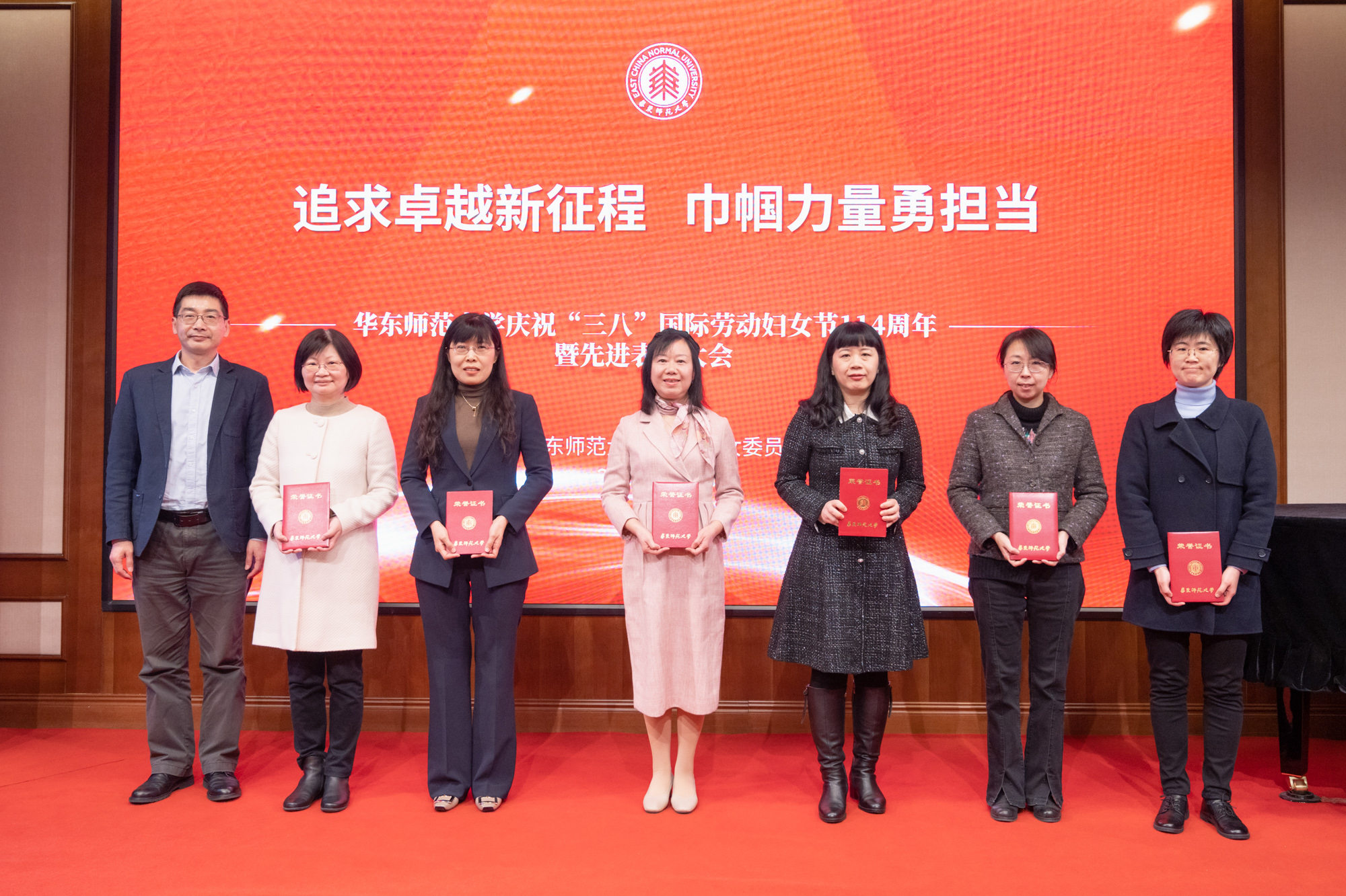 会议表彰了上海市“巾帼建功标兵”和“巾帼创新新秀”各1名;上海市教育系统“巾帼文明岗”1个、“巾帼建功标兵”1名、上海市教育系统第三届“最美家庭”和第十四届“比翼双飞模范佳侣”各1对;校“三八红旗手”15名、“三八红旗集体”10个、校“比翼双飞模范佳侣”10对和“十佳女大学生”9名。