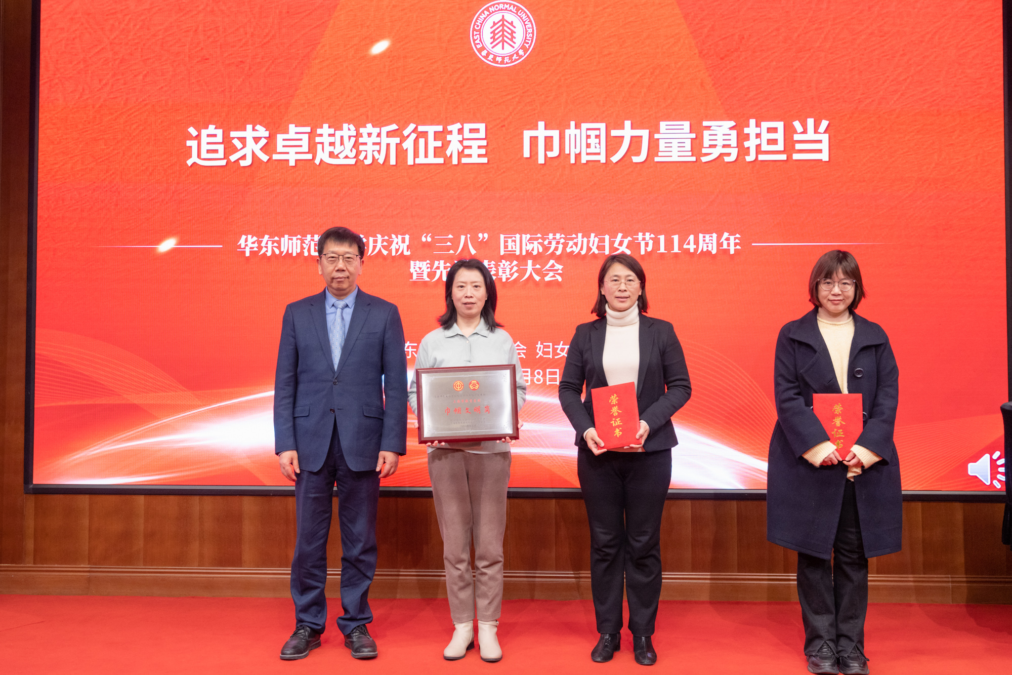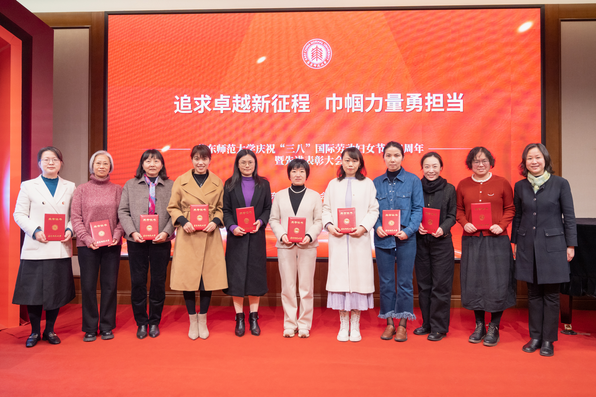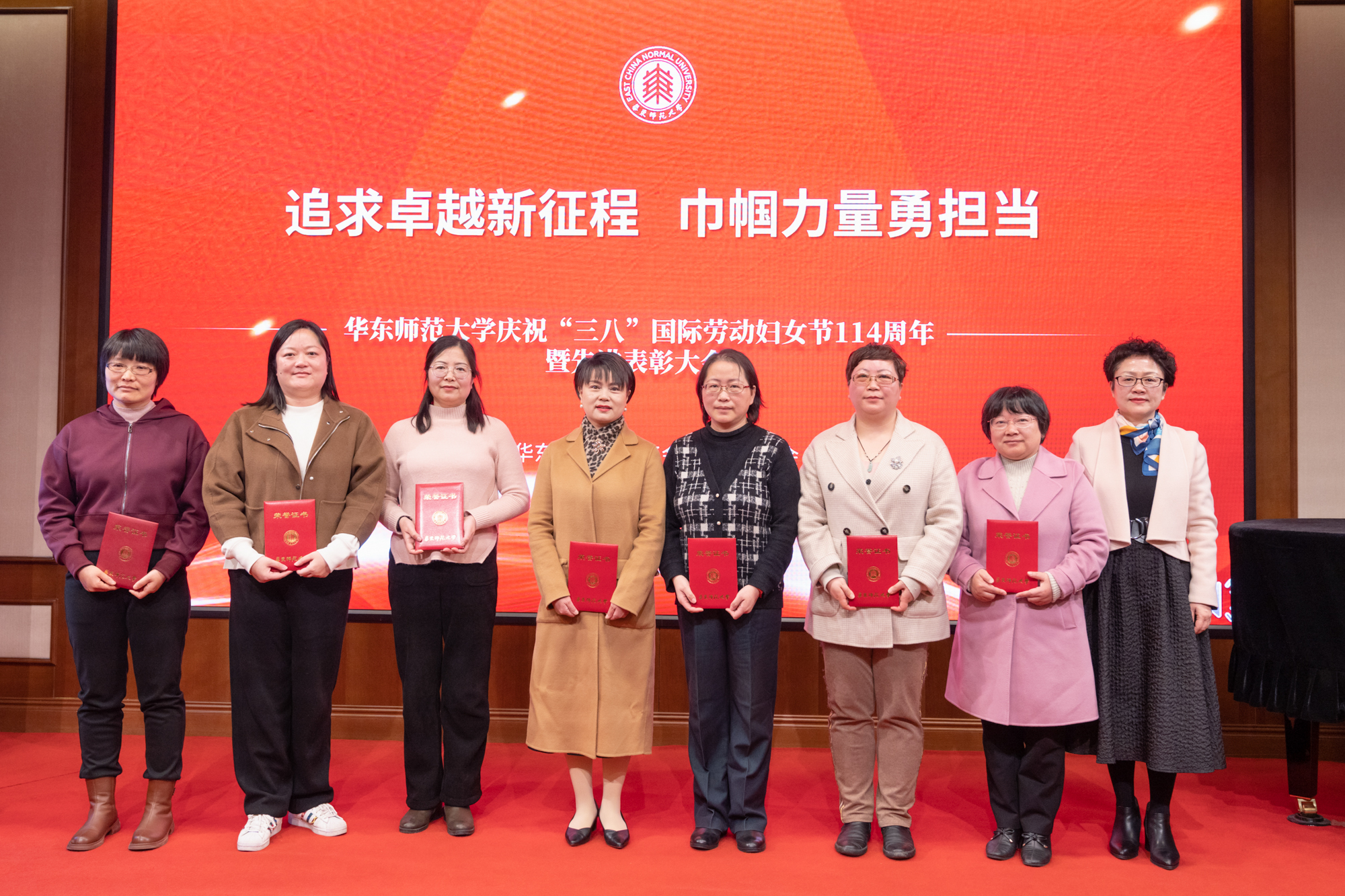 会议表彰了上海市“巾帼建功标兵”和“巾帼创新新秀”各1名;上海市教育系统“巾帼文明岗”1个、“巾帼建功标兵”1名、上海市教育系统第三届“最美家庭”和第十四届“比翼双飞模范佳侣”各1对;校“三八红旗手”15名、“三八红旗集体”10个、校“比翼双飞模范佳侣”10对和“十佳女大学生”9名。