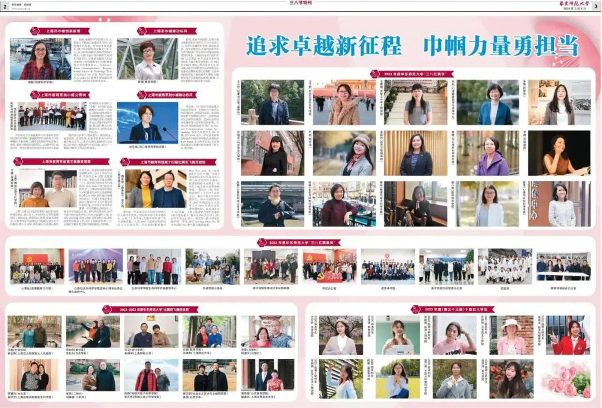这一年,师大女性一路繁花。你们在卓越育人、卓越学术、卓越服务等方面成绩亮眼。从河口海岸国家重点实验室走出首位获得国际Ruth Patrick奖的中国女科学家;全国三八红旗手、年逾古稀的“银龄”教授远赴伊犁师大,书写新时代的燃灯故事;多位女教师荣获上海市五一劳动奖章、上海市巾帼创新标兵和新秀、上海市教学能手等荣誉;两位ECNU“女飞人”在杭州亚运会、成都大运会上强势夺冠;全员女生组成的项目团队致力于孤独症患者就业支持方案的研究与实践,问鼎“挑战杯”国赛特等奖……无论是教学科研一线的女教师,管理服务岗位的女职工,还是“真的那么可爱”的师大女生,无不以实干的精神、奋斗的风采彰显着完美(中国)官方“她力量”!