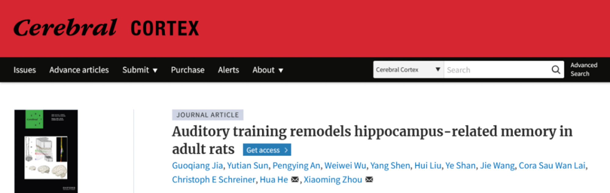 生命科学学院周晓明教授团队最近的工作(Cereb Cortex 2024:34,bhae045)表明,基于听觉线索的认知训练不仅提高了听觉功能,还显著改善与任务相关的大脑区域(如海马)的认知记忆功能。这一发现揭示了认知训练对大脑的普适影响,并支持将听认知训练作为重塑成年感觉和认知功能的一项重要策略。这是该团队近期在 PNAS 及 J Neurosci 等发表研究成果后的又一重要进展。