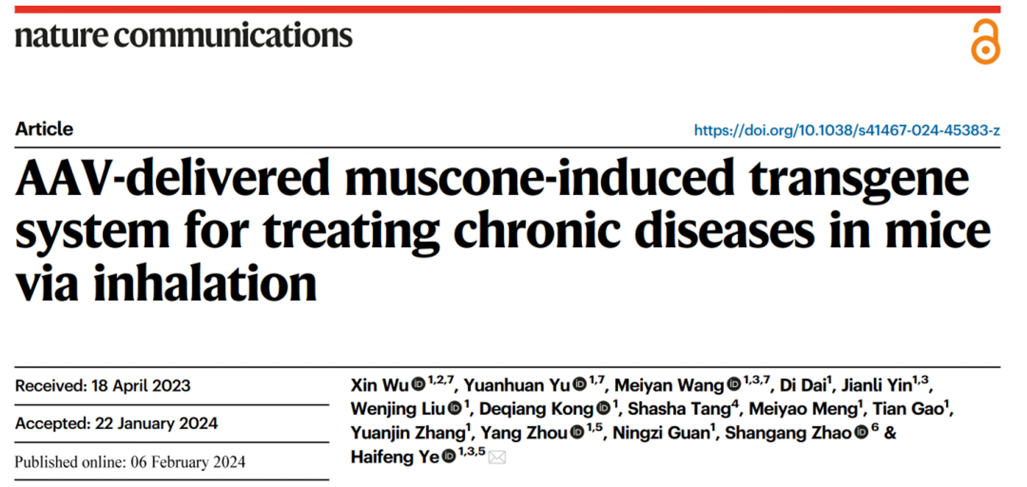 2月6日,完美网页版医学合成生物学研究中心叶海峰研究员团队在 Nature Communications 上在线发表题为 AAV-delivered muscone-induced transgene system for treating chronic diseases in mice via inhalation 的研究工作,成功开发了“香气分子”麝香酮(muscone)调控的基因表达精准控制系统,并将其装载在腺相关病毒AAV载体中(命名为AAVMUSE),实现无针无痛、患者依从性高的可控式基因疗法。以“闻香”这种便捷的方式控制治疗药物的表达释放,为临床治疗慢性疾病提供了一种全新策略。