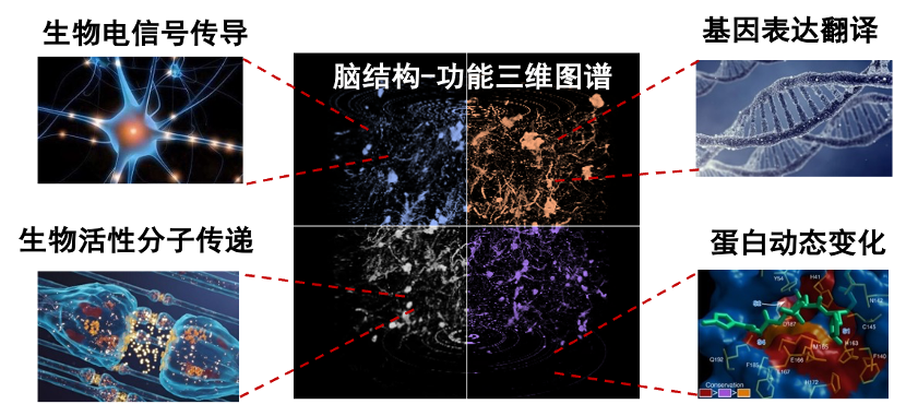 此次获批的重大项目针对脑海马区分子时空图谱绘制中存在的关键科学问题,依托上海同步辐射大光源,发展分辨率高、穿透深、速度快的X-射线成像技术,实现脑海马区介观结构成像。同时发展高灵敏、高通量蛋白质的筛选与精准解析技术,发现与筛选与阿尔兹海默症相关的关键蛋白与功能小分子;针对这些靶标蛋白和神经递质等活性小分子,设计合成可以特异性快速识别靶标分子的多色成像探针,发展细胞、组织、活体等跨尺度多通道高时空分辨成像新方法,同时获取细胞内外的神经递质、蛋白质等化学分子随阿尔兹海默症发生、发展的变化信息, 获取不同的光、电参数信息进行可视化动态模拟成像。最后,基于人工智能和大数据处理方法,发展图像融合技术和图像算法,将海马区的X-射线结构图谱和功能分子空间分布图谱进行融合,获得脑海马区分子时空图谱。