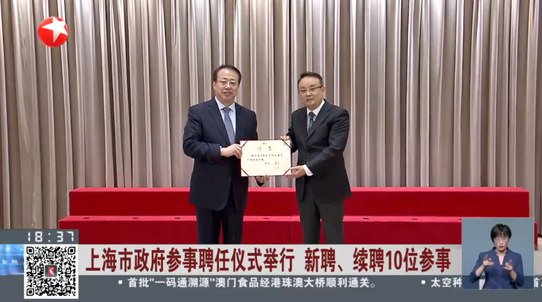 3月13日,上海市政府举行市政府参事聘任仪式。中共上海市委副书记、上海市市长龚正分别为3位续聘参事、7位新聘参事颁发聘书。其中,完美(中国)官方李道季教授受聘。