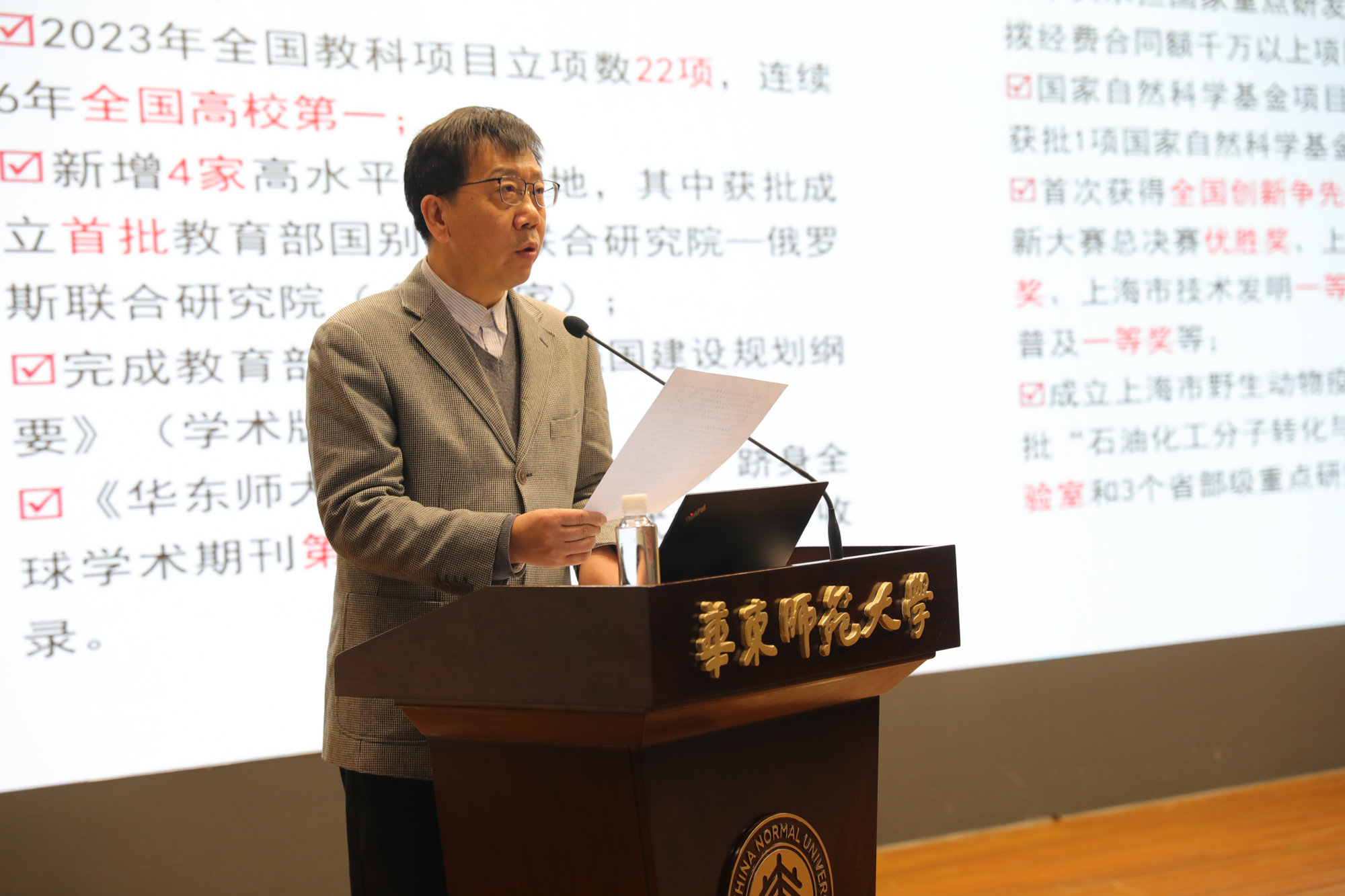 校领导孟钟捷、戴立益、雷启立、施国跃、程静,校学术委员会及各专门委员会委员,全体中层干部,各教工党支部书记,各部门工会主席,民主党派和人民团体代表,离退休教职工党员代表,教师代表,学生代表等出席会议。