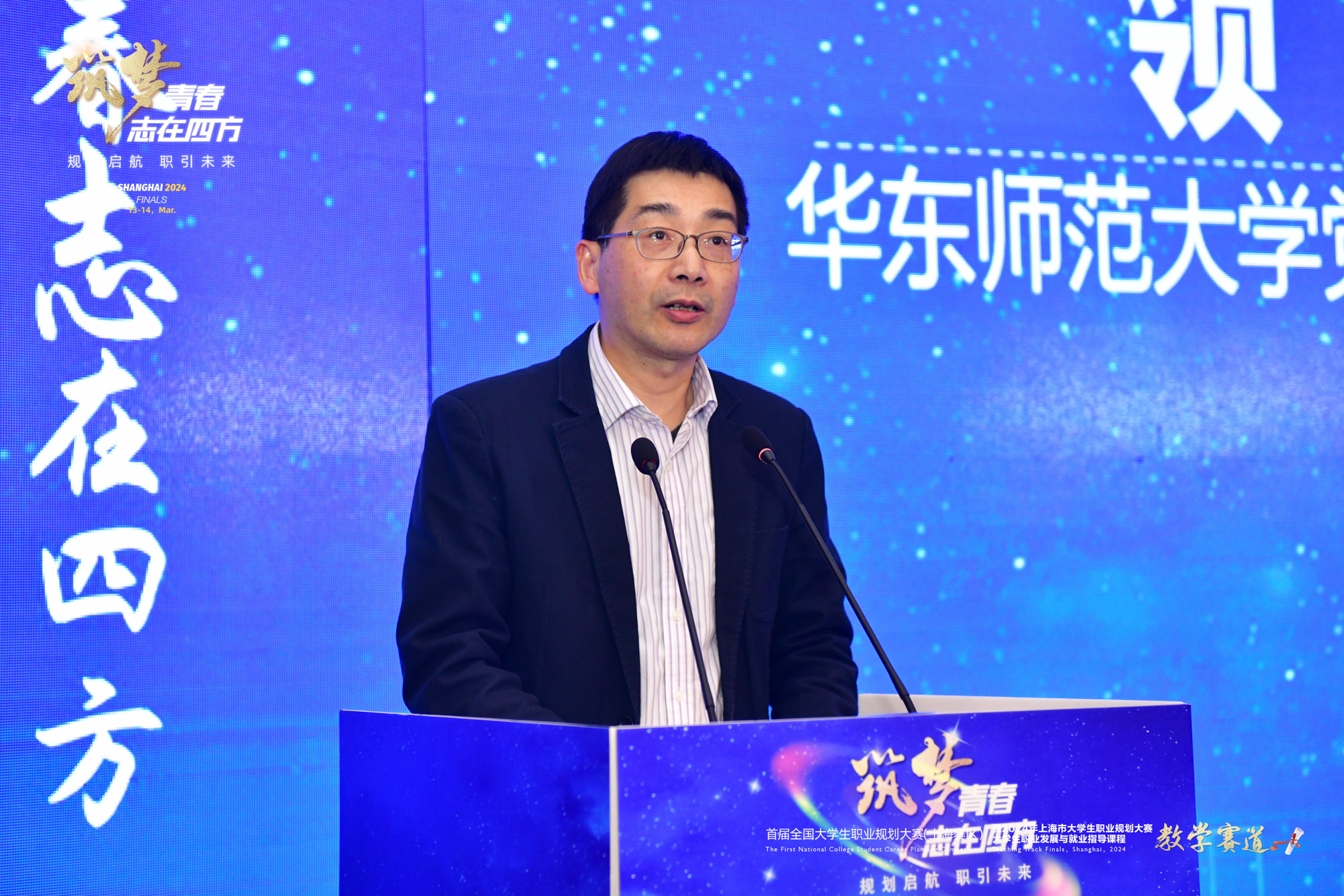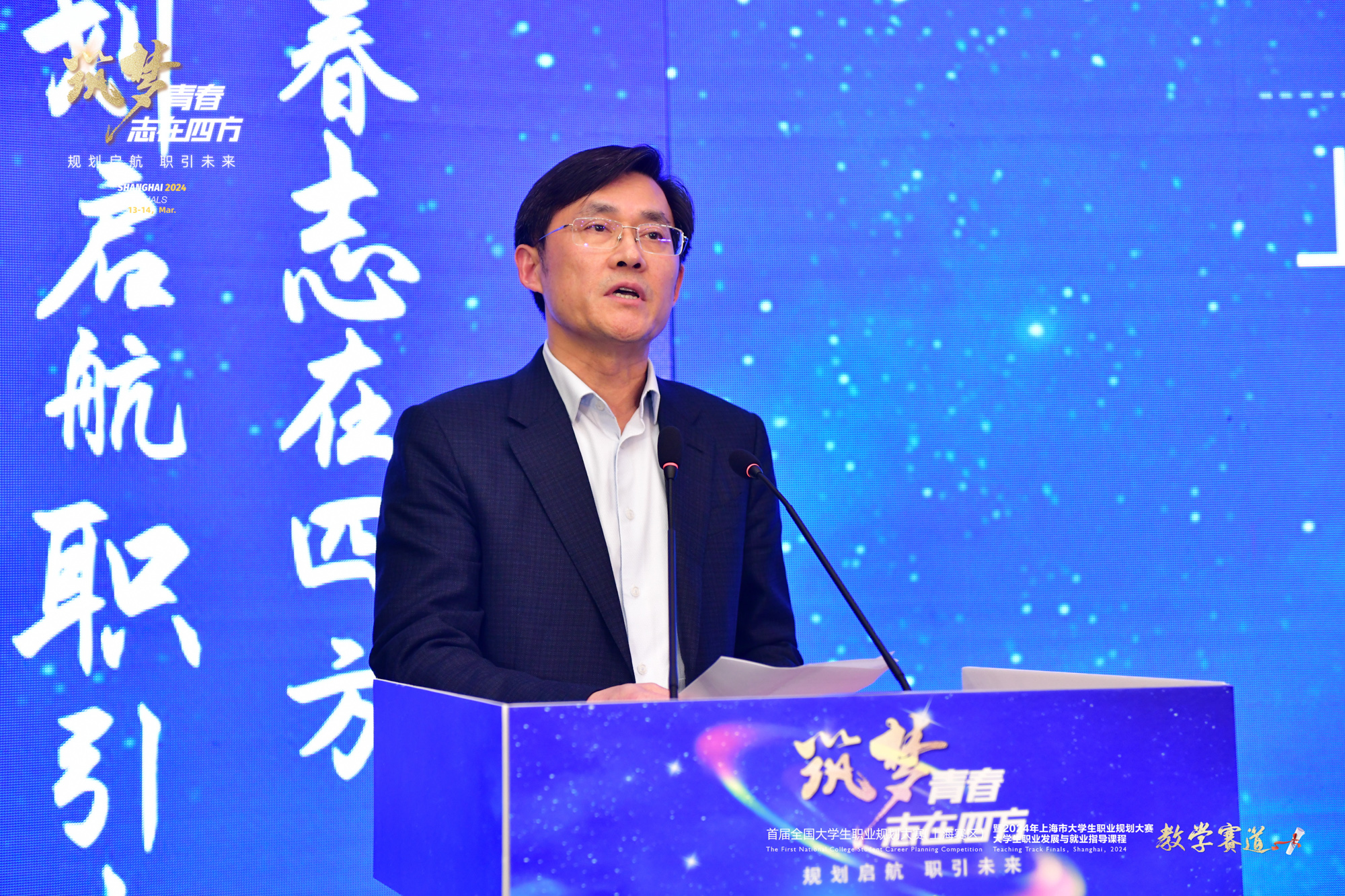 上海市教委副主任王浩充分肯定了本次比赛的成果,并指出了新时期做好上海高校生涯教育与就业指导工作的方向。他强调,培育一批具有卓越教学能力的生涯课程教师,建设一批高质量高水平的一流课程,形成高效科学的教学机制是学生职业规划能力提升的关键。同时,王浩也提出了三点期待,一是期待老师们躬耕教坛,坚守一线,弘扬教育家精神,继续把课上好;二是期待课程建设中能进一步丰富内涵和加强导向;三是期待课程建设能积极拥抱信息化的大潮。
