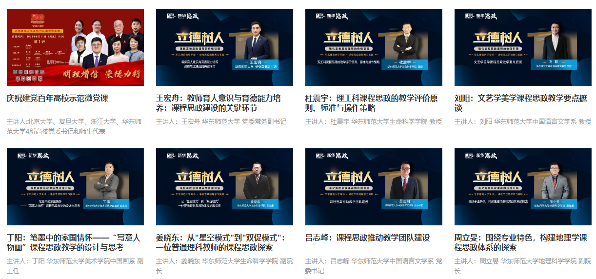 推动高校优质课程资源共享。牵头成立全国高等师范院校课程思政教学研究联盟,举行全国性课程思政教学研讨会议。联合新华思政推出“师者筑心、润物无声”课程思政示范课展播。通过慕课西行计划、教育部师范教育协同提质计划、中西部高校青年教师融合式教学进修项目等,已向外校同步课堂开放27门课程思政建设成效好的精品课程,我校教师受邀为教育部网培中心,上海市市属高校新教师培训、青年教师带教导师专题研修班等开展课程思政培训。