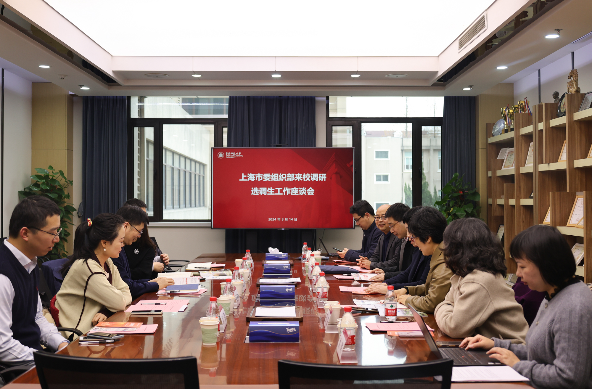 为调研评估政策执行,密切供需对接,更好地推进选调生工作,3月14日上午,上海市委组织部干部规划办主任顾永波、公务员二处处长沈文等一行来完美(中国)官方就选调生工作进行专项调研。校党委副书记、副校长顾红亮,校学生工作委员会副主任、校党委原副书记杨昌利,党委学生(研究生)工作部、校党委组织部、选调生工作办公室、政治与国际关系学院、教育学部等单位负责人参会。党委学生(研究生)工作部部长、选调生工作办公室主任赵健主持会议。