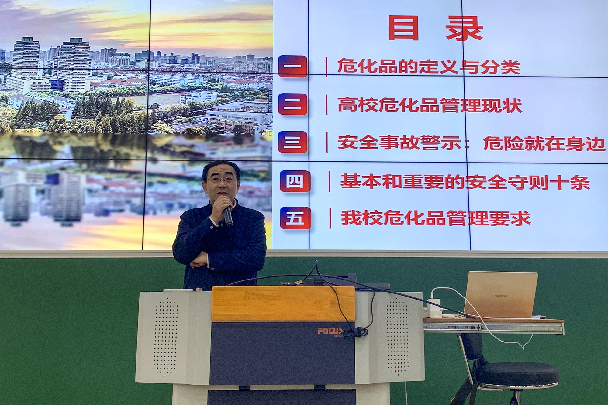 为深入贯彻落实习近平总书记关于安全生产的重要论述和指示批示精神,进一步强化学校危险化学品(以下简称“危化品”)的安全管理,2024年3月14日,实验室与装备处(以下简称“装备处”)特邀上海市化工职业病防治院专家举办危化品安全知识与管理培训会。来自化学与分子工程学院、物理与电子科学学院、地理科学学院、生态与环境科学学院、河口海岸科学研究院等二级单位的107名师生参加了培训会。