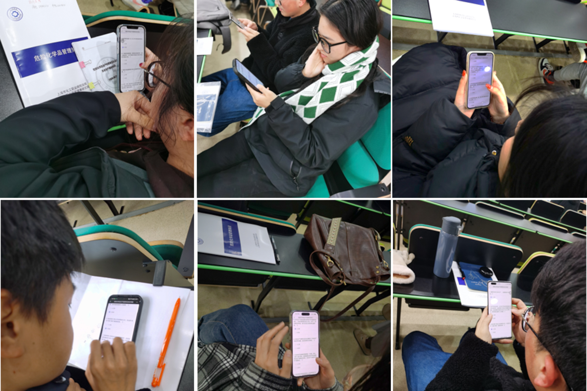 最后,按照上海市化工职业病防治院的要求,参与培训的师生现场进行了危化品相关知识考核。