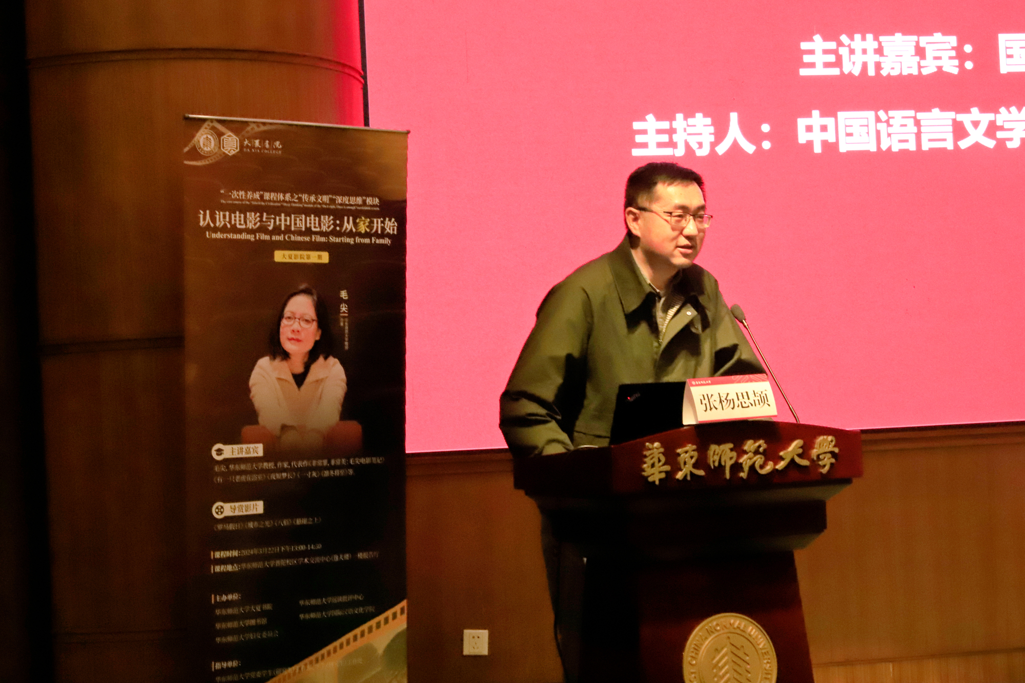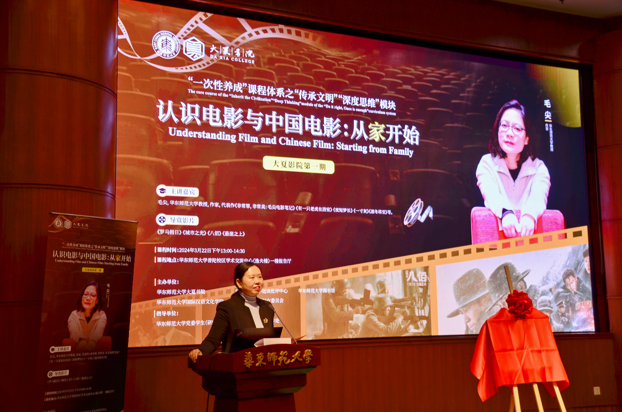 3月22日,完美网页版“大夏影院”正式揭牌!由大夏书院、远读批评中心、图书馆、国际汉语文化学院、妇女委员会联合主办的“大夏影院”首期电影导赏课暨“第二课堂”活动“认识电影与中国电影:从家开始”在普陀校区逸夫楼报告厅举办。国际汉语文化学院教授毛尖,图书馆副馆长魏明扬,党委学生(研究生)工作部副部长、心理健康教育与咨询中心主任庄瑜,大夏书院院长、心理与认知科学学院庞维国教授,大夏书院副院长栗蕊蕊、王郦玉,中国语言文学系博士生、课程运维官张杨思颉,以及200余名师生出席课程。
