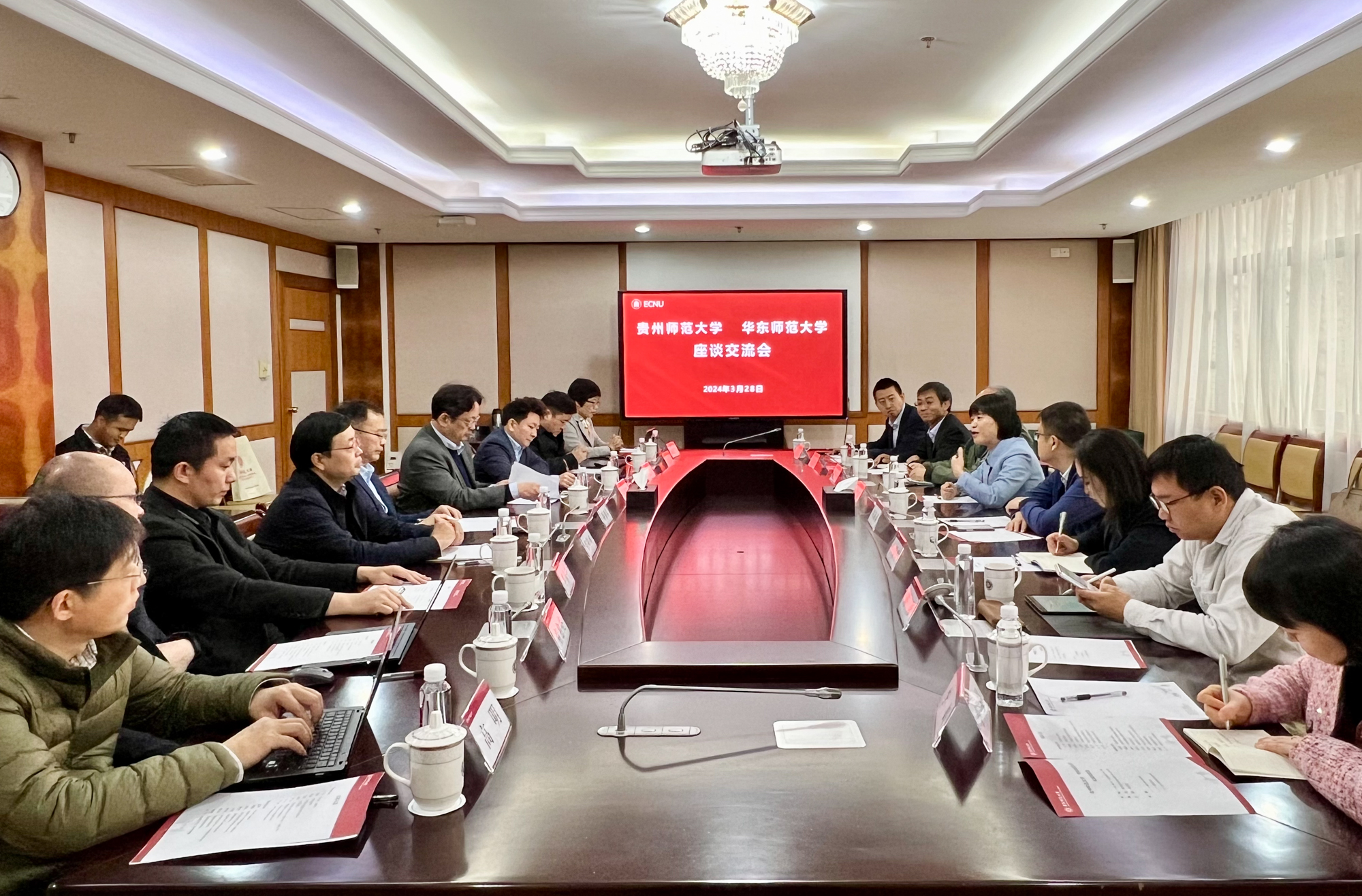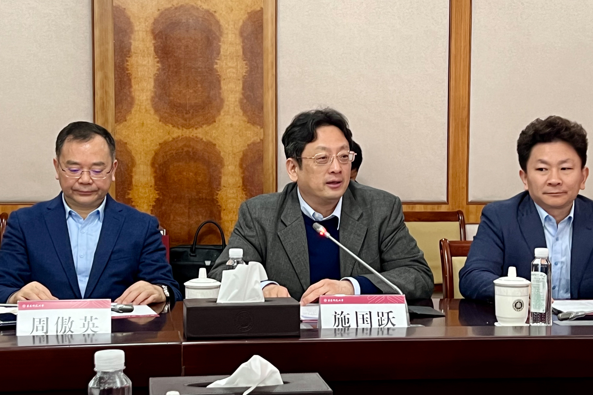 施国跃对贵州师大的来访表示热烈欢迎。他感谢贵州师大前身国立贵阳师范学院对大夏大学的呵护,感谢贵州师大对大数据应用研究院建设的大力支持,希望两校发挥各自特色和优势,携手将研究院打造为省校深度合作的典范,推动校校合作走宽走深。