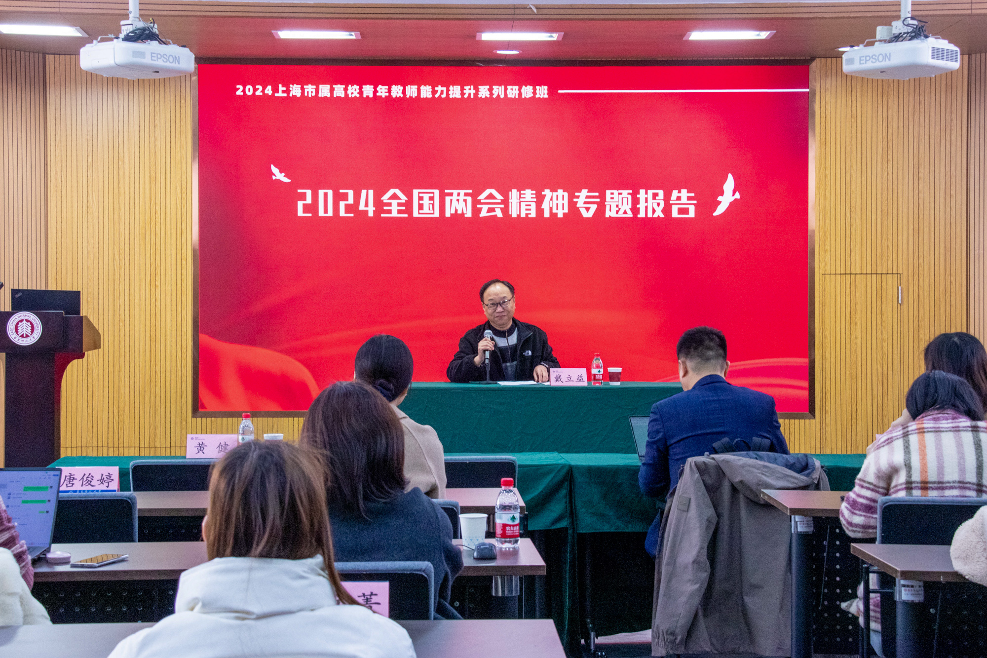 开班仪式后,戴立益就2024全国两会精神作了专题报告,开启此次系列研修班的第一堂课。