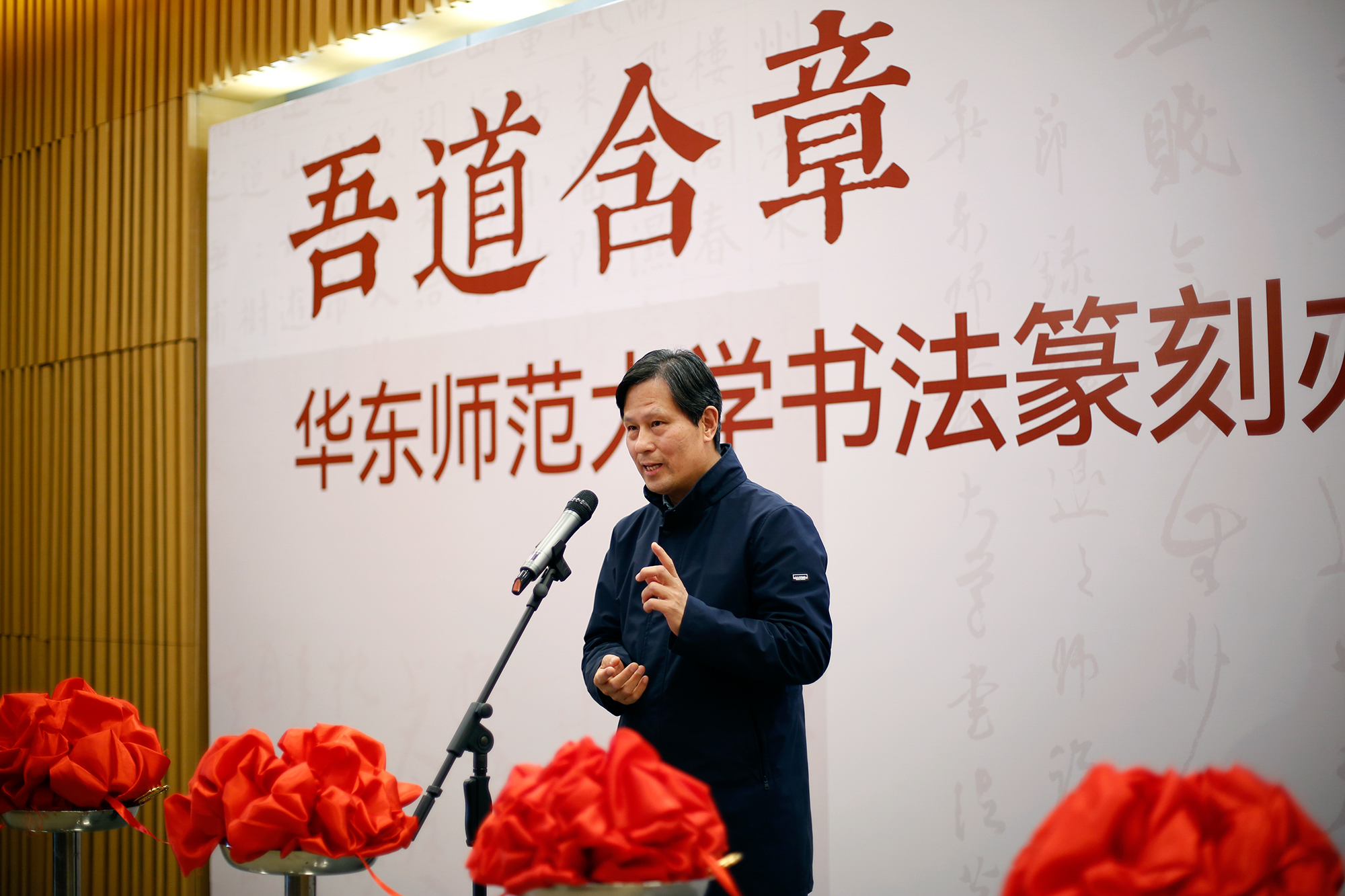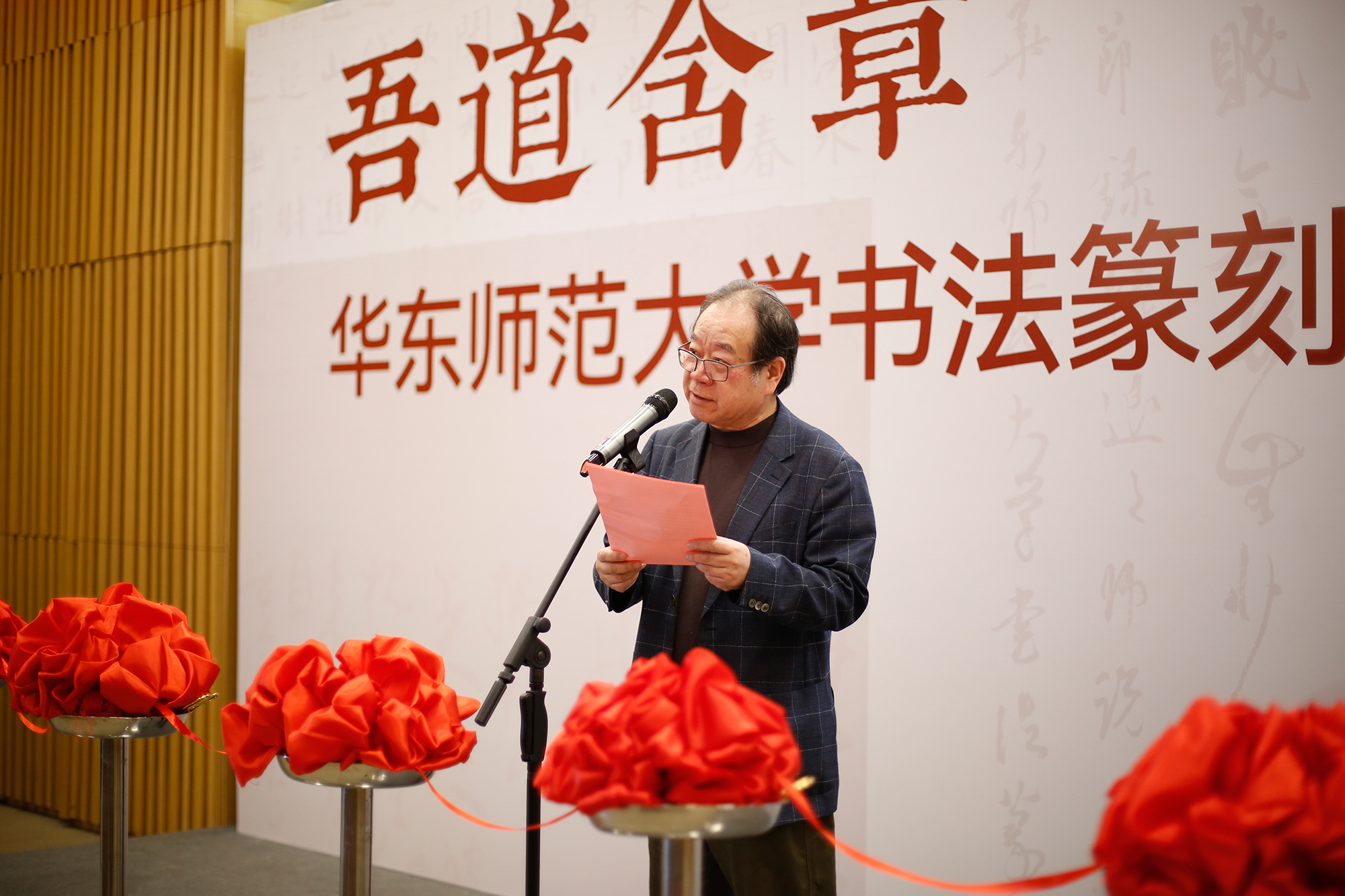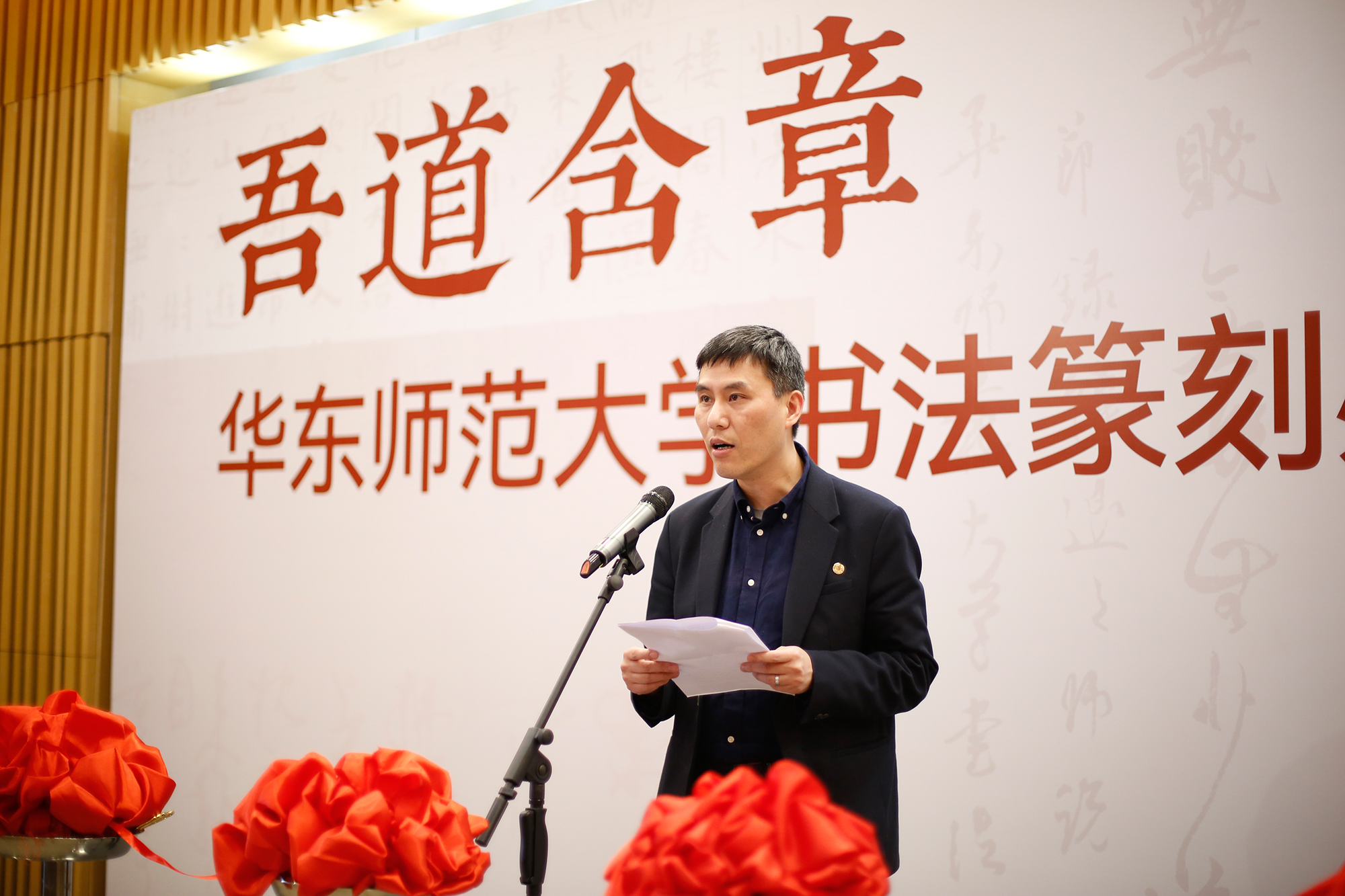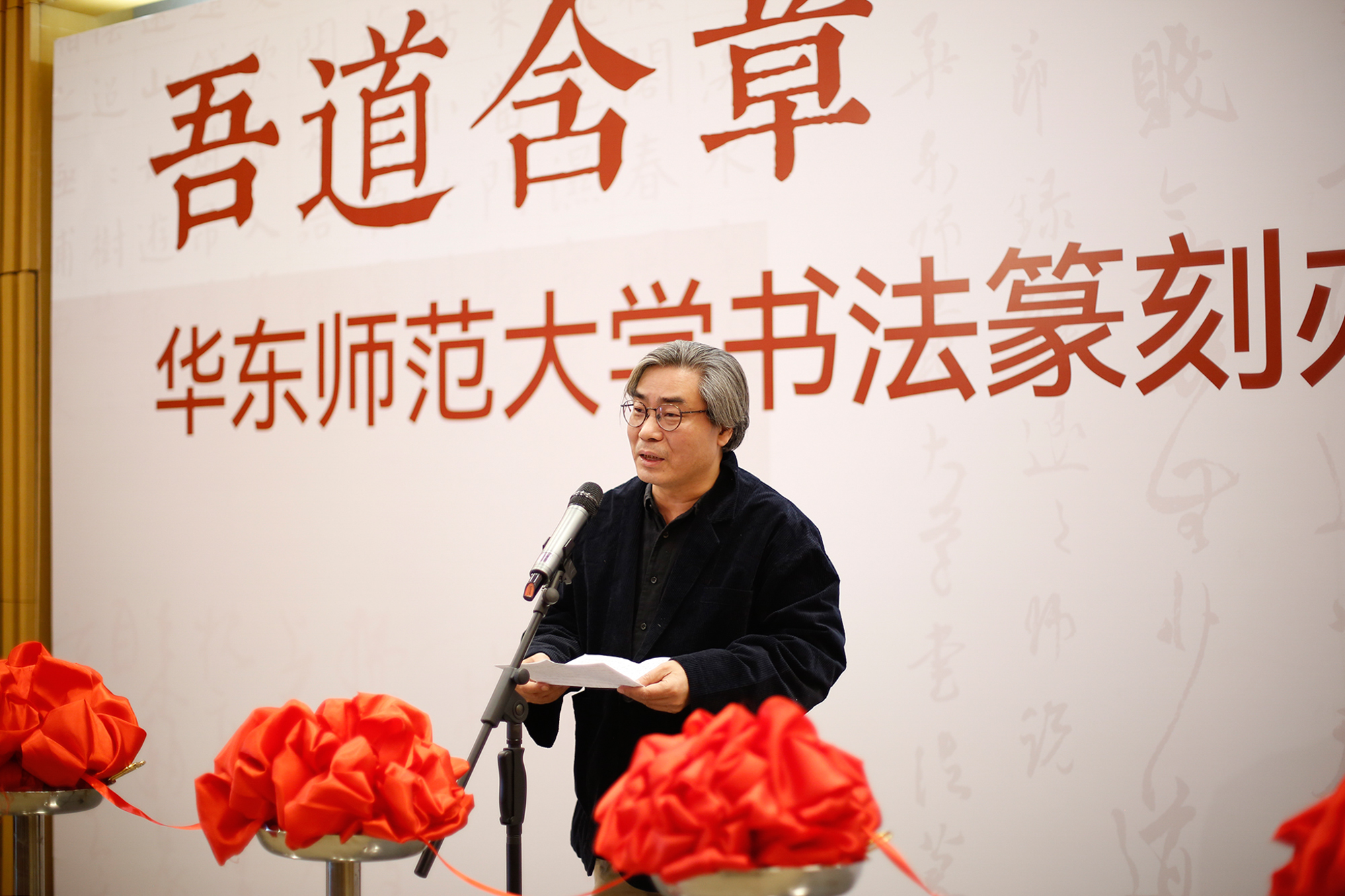 展览由上海市文学艺术界联合会、完美网页版主办,上海市书法家协会、完美(中国)官方党委宣传部、上海韩天衡美术馆、完美(中国)官方美术学院承办,上海市中国书法研究中心、完美(中国)官方美术学院书法系、教育部中华优秀传统文化篆刻传承基地协办。开幕式由美术学院副院长崔树强教授主持。
