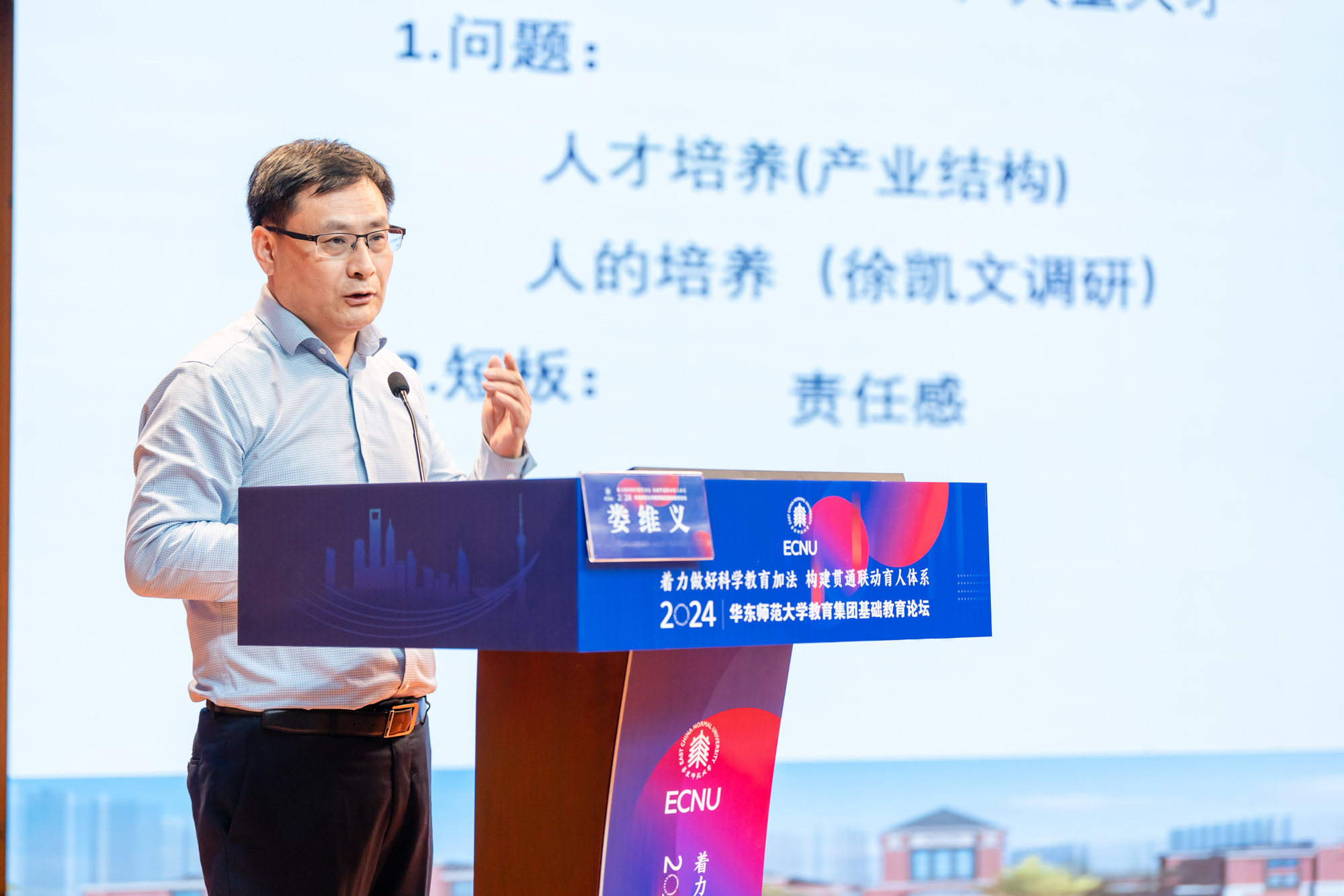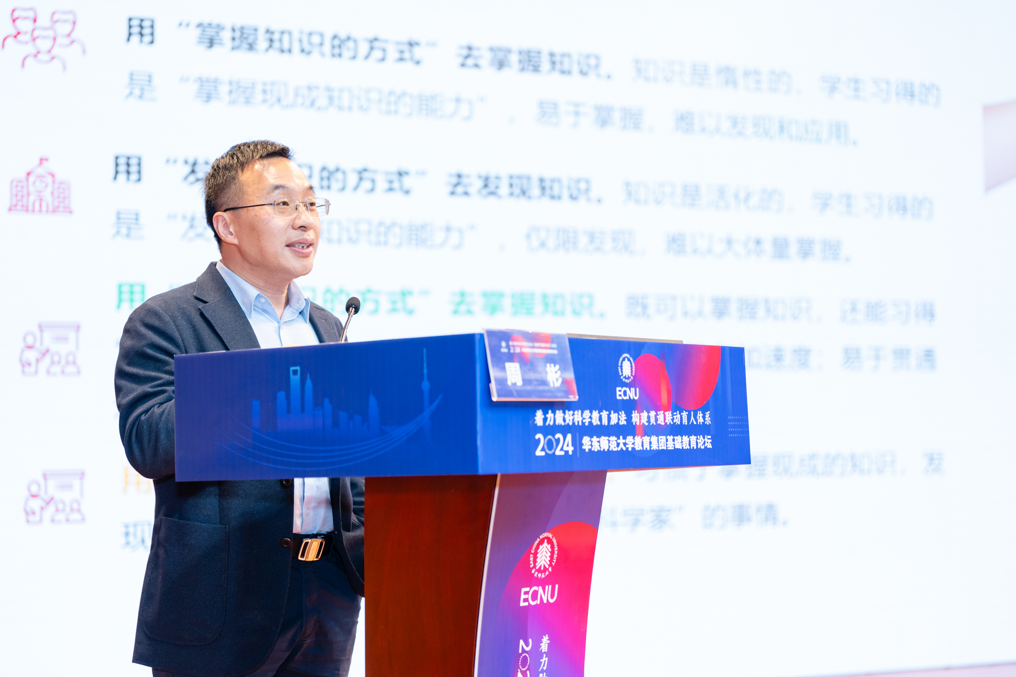 完美(中国)官方四附中校长眭定忠以“践行科学方法的科学教育”为题,讲述了依托完美(中国)官方在学校开设《多彩的科学》《科学与哲学》等课程案例。同时在完美(中国)官方卓越学术的牵引下,联合华二普陀校区、华外实验、华师附小、华师附幼,搭建一条大中小幼一体贯通的科学教育链,系统思考科学教育的培养目标、课程设置,为学生真正走向卓越发展奠定扎实的基础。