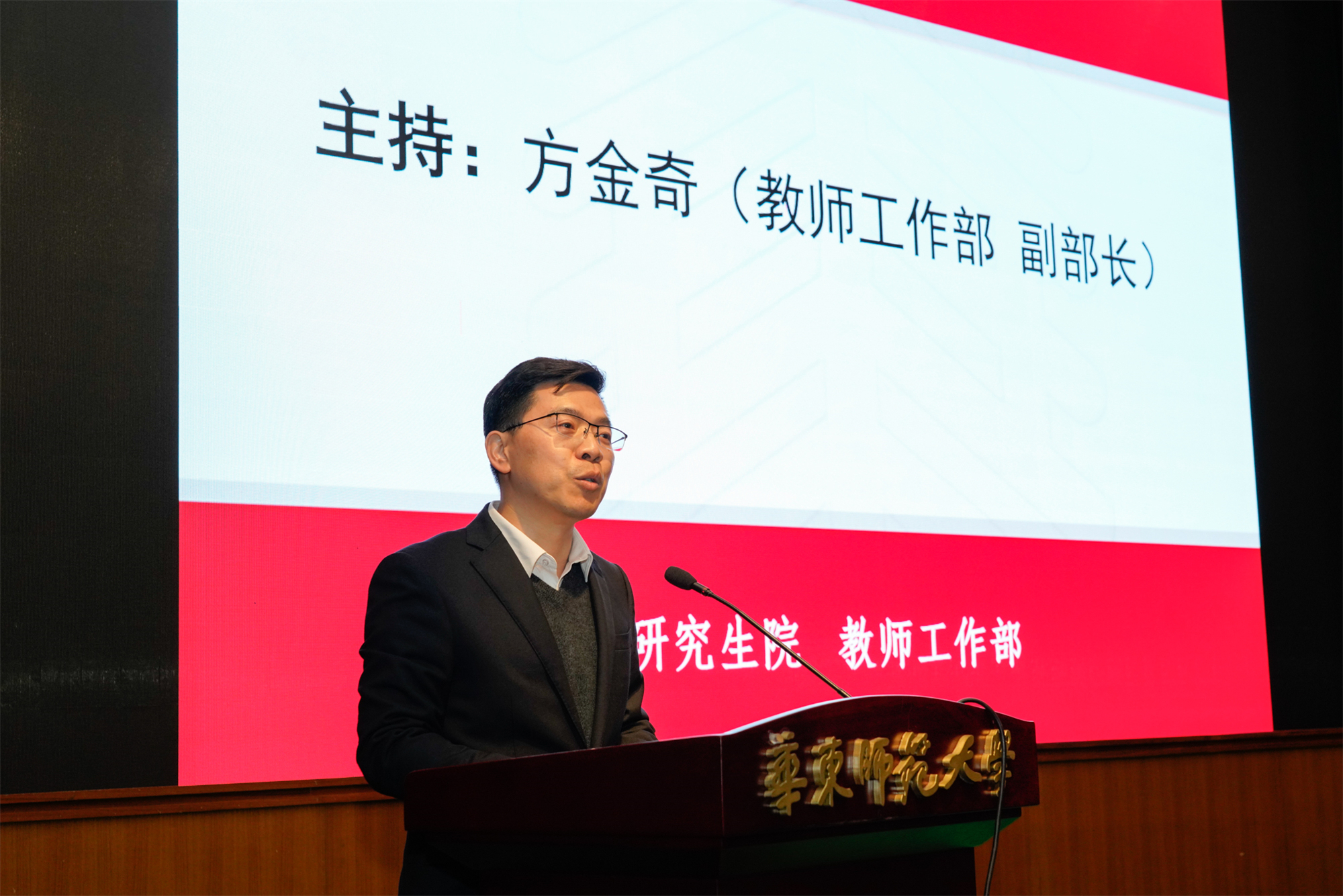 研修培训会分上、下午两场,分别由研究生院常务副院长张文、教师工作部副部长方金奇主持。