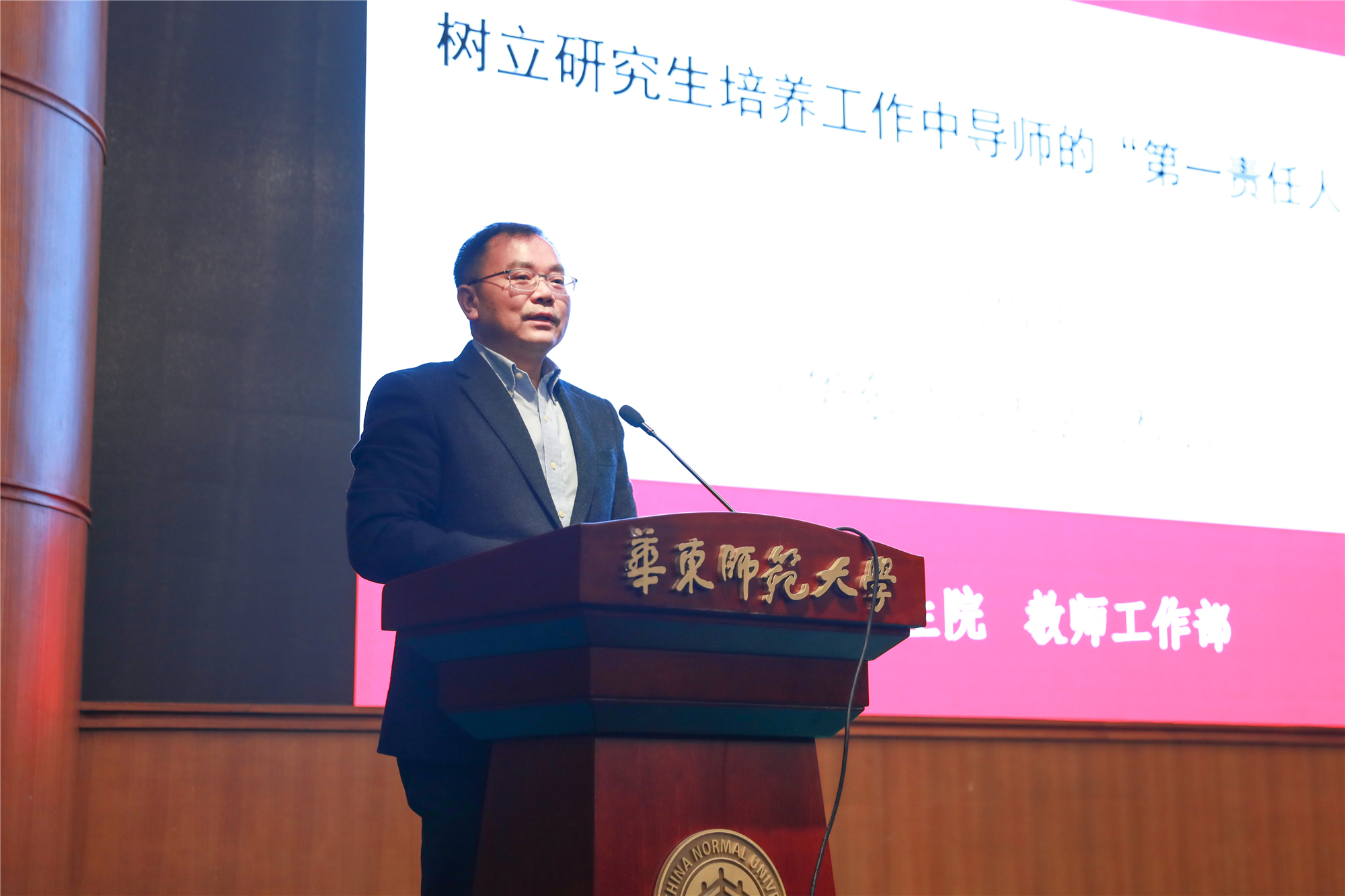 完美(中国)官方副校长周傲英作题为《树立研究生培养工作中导师的“第一责任人”意识》的报告