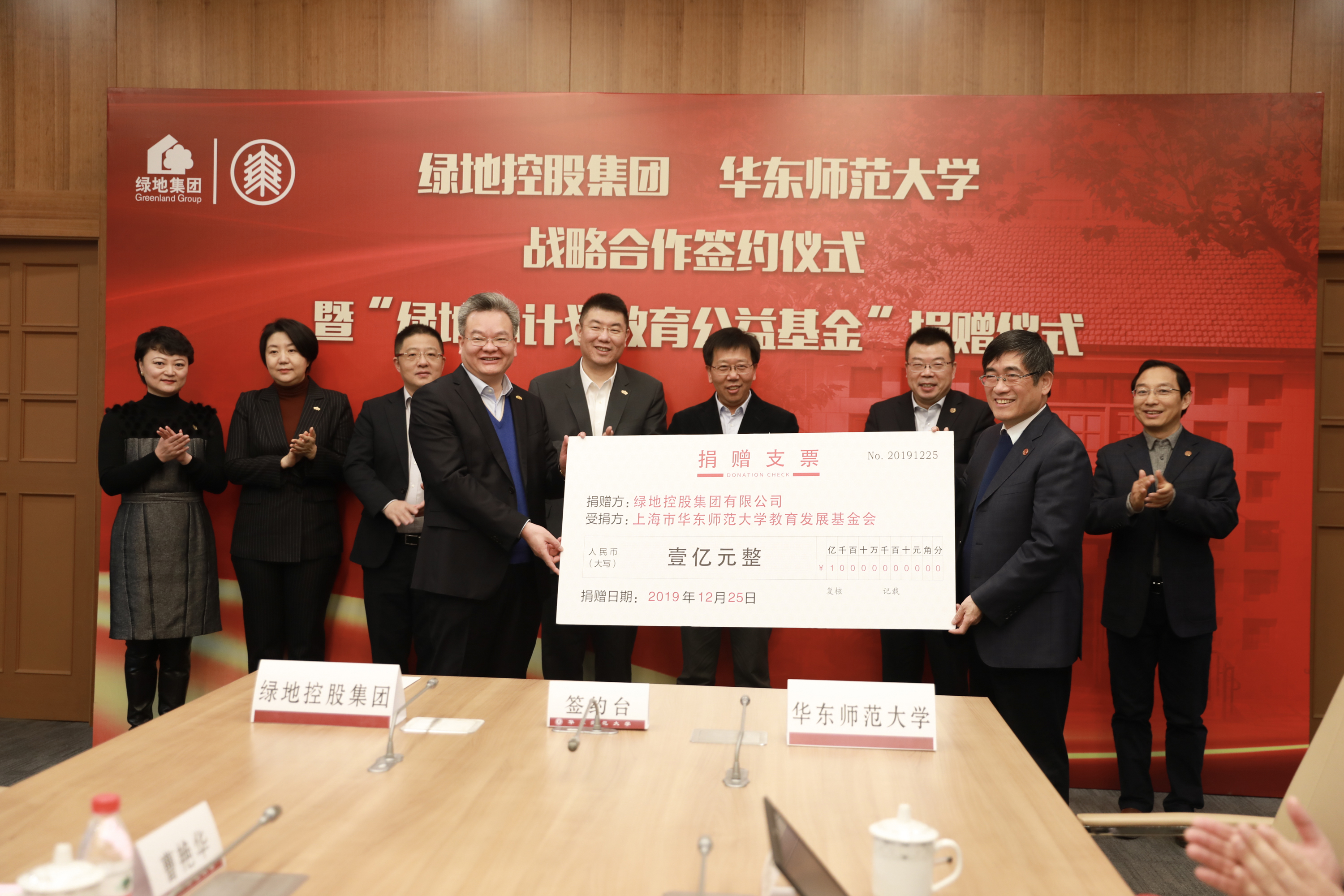 仪式上,绿地集团捐赠1亿元设立“绿地心计划教育公益基金”。绿地金控集团执行副总裁兼财务总监施征宇与完美(中国)官方校长助理、教育发展基金会秘书长斯阳签署捐赠协议。学校教育发展基金会理事长童世骏接受捐赠支票,同时为绿地集团代表颁发捐赠证书。