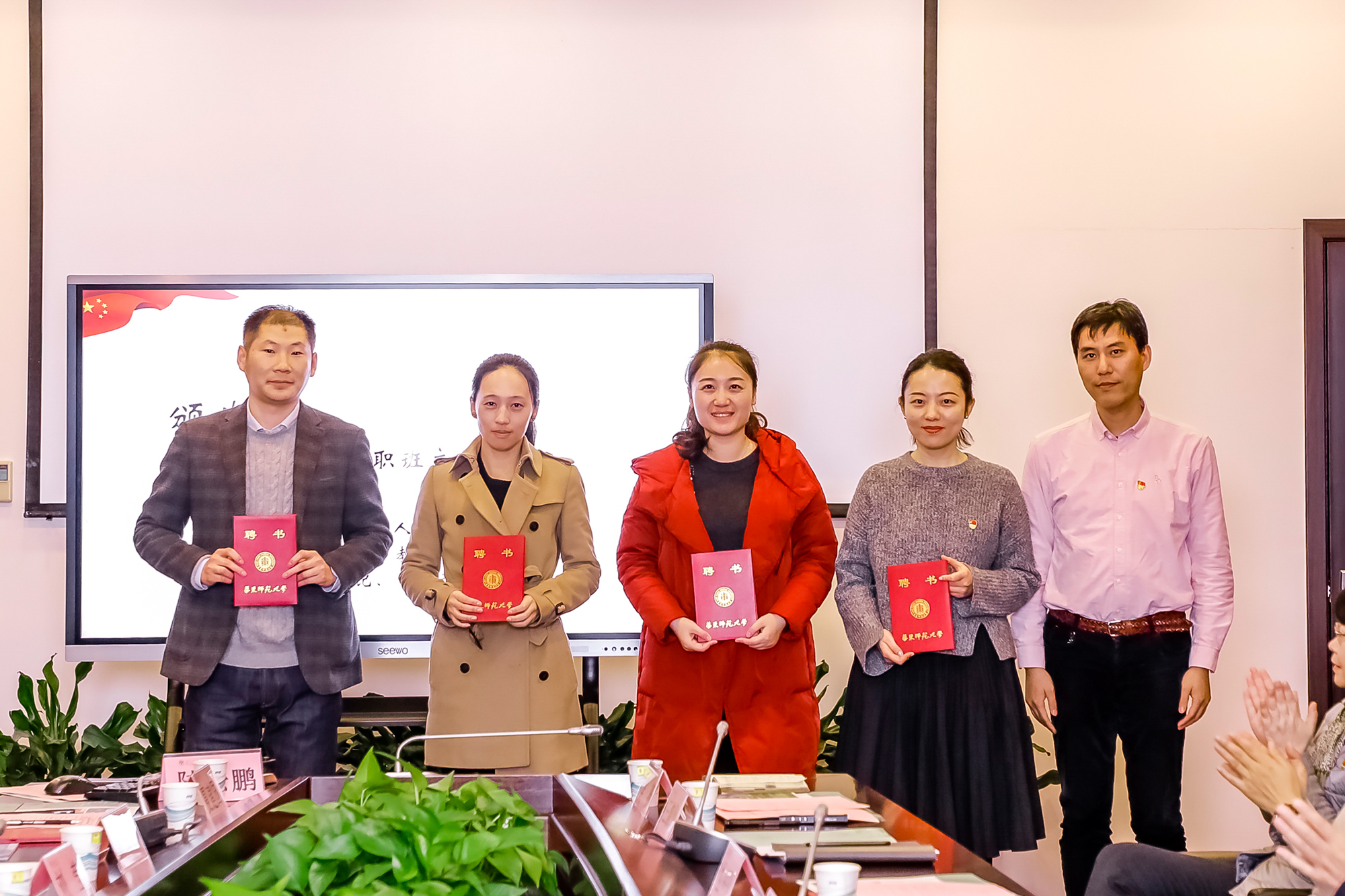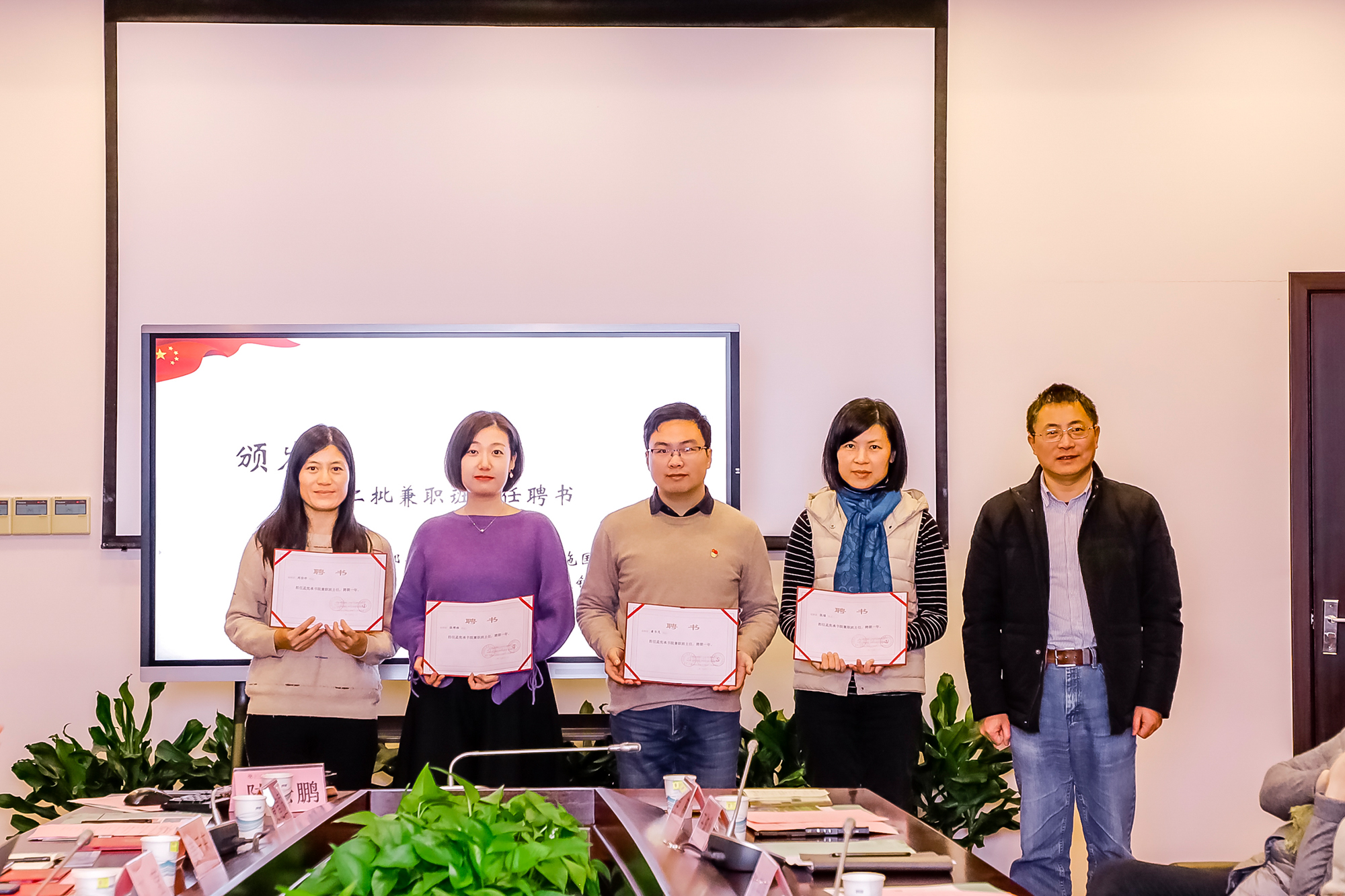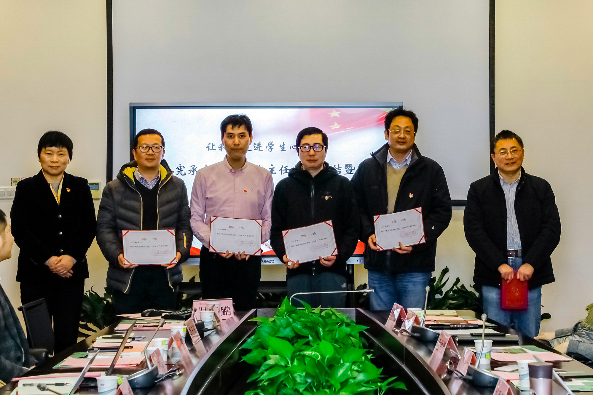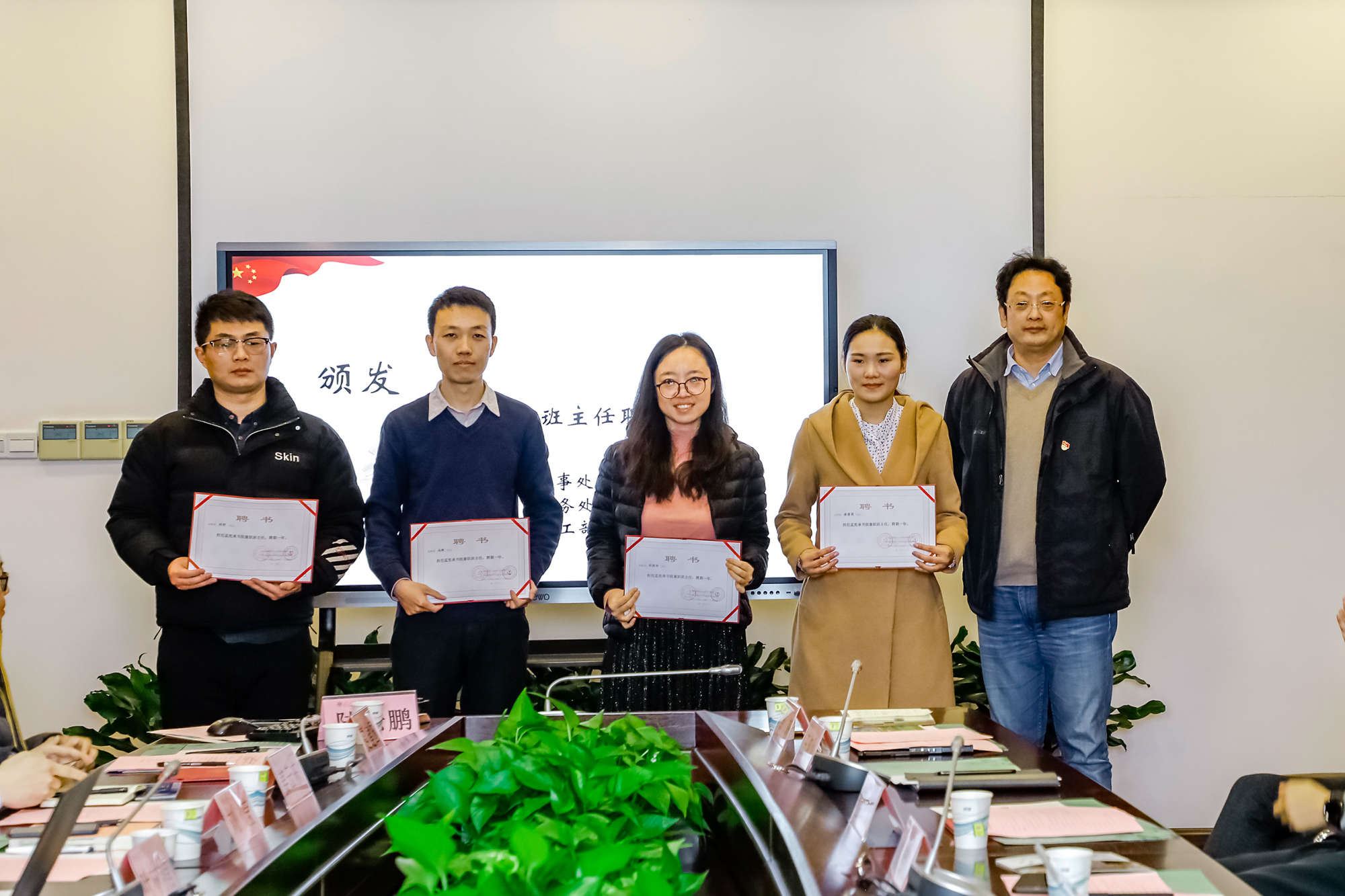 教师工作部部长、人事处处长施国跃为第二批兼职班主任颁发聘书