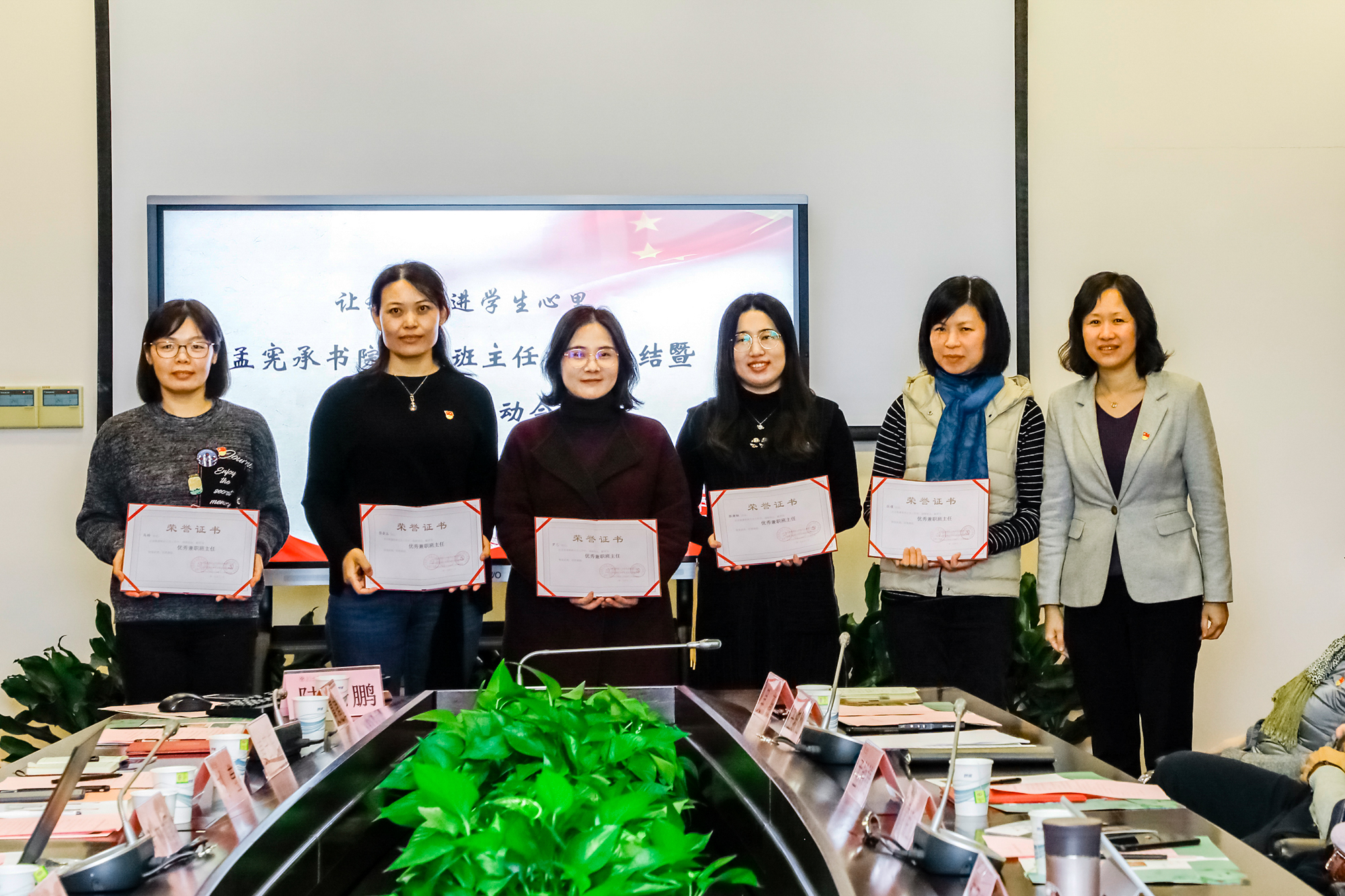 校党委常委、组织部部长程静为首批优秀兼职班主任颁发证书