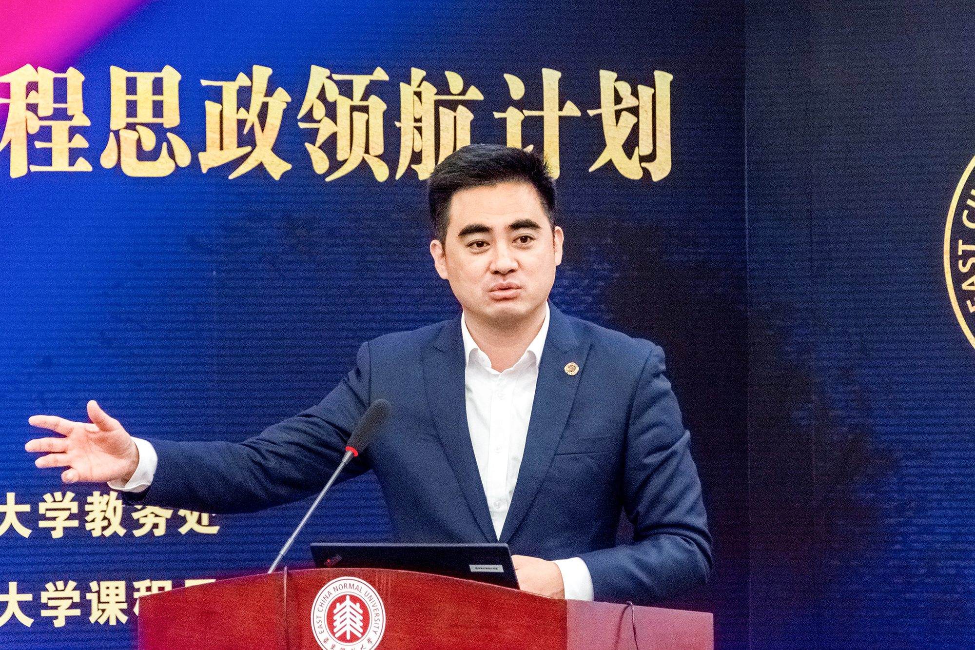 最后,王宏舟作总结讲话。他强调要以四个回归认识和理解课程思政。第一,课程思政要回归学校育人本位。立德树人是学校的根本任务,对学生的培养要着眼于将来,着眼于社会主义事业的发展来育人;第二,课程思政要回归教学传递价值的本源。学校课程要完成知识传授,还要实现价值传达,价值传递要有机结合教育教学的规律和学科教育的规律;第三,课程思政要回归教师教书育人本职,要强化教师在育人意识和育德能力方面的培养;第四,课程思政要回归教育的本质,着眼于教育的本质和教育的规律,着眼于人的全面发展。王宏舟对接下来的课程思政工作提出要求,具体要在四个方面做到领航:一是在骨干培养上做领航,要更好地出品牌、出成果、出团队、出名师骨干,为上海乃至全国作示范;二是机制建设上做领航,要及时总结提炼现有的工作经验、方法,把学校的总体实施方案、评价标准、教研文化等经验进一步强化提升;三是在教师培训上做领航,充分发挥我校教师队伍建设优势,进一步提升教师育人意识、育德能力,把课程思政作为一种内在的自醒和外在的自觉;四是在课程思政研究上做领航,进一步加强对教育规律、教育对象的研究,育人工作进一步凸显底色,进一步强化扎根中国大地办教育。