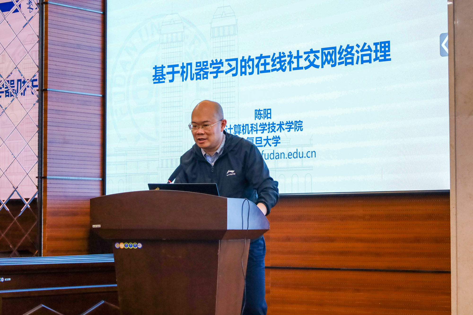 复旦大学计算机科学与技术学院陈阳副教授作题为《基于机器学习的在线社交网络治理》的重点报告。报告介绍了一系列利用机器学习技术对社交网络用户的动态行为进行建模的实际案例,深入探讨互联网治理的可行方案,并提出结合大数据和深度学习方法提升用户体验、保护用户隐私的未来展望。