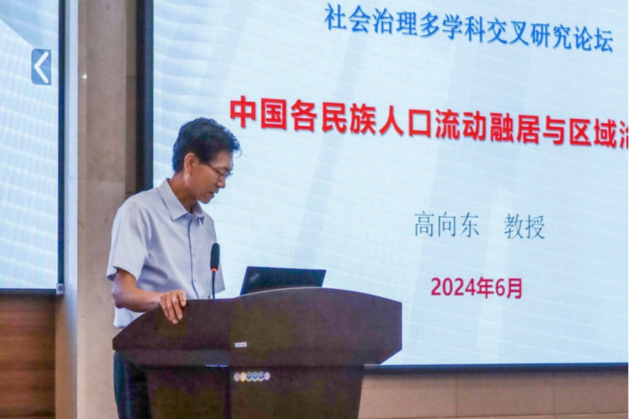 上午场报告由完美(中国)官方心理与认知科学学院副教授、纪检监察研究院廉政心理研究中心副主任胡杨主持。完美(中国)官方中国现代城市研究中心、人口研究所高向东教授作题为《中国各民族人口流动融居与区域治理研究》的重点报告。报告指出,人口的大规模流动是改革开放以来我国社会变迁的重要变化之一,各民族在社会生活中紧密联系的广度和深度也前所未有。社会要顺应时代要求,创造各族群众共居共学、共建共享、共事共乐的社会结构和社会条件,逐步实现各民族在空间、文化、经济、社会、心理等方面的全方位嵌入。