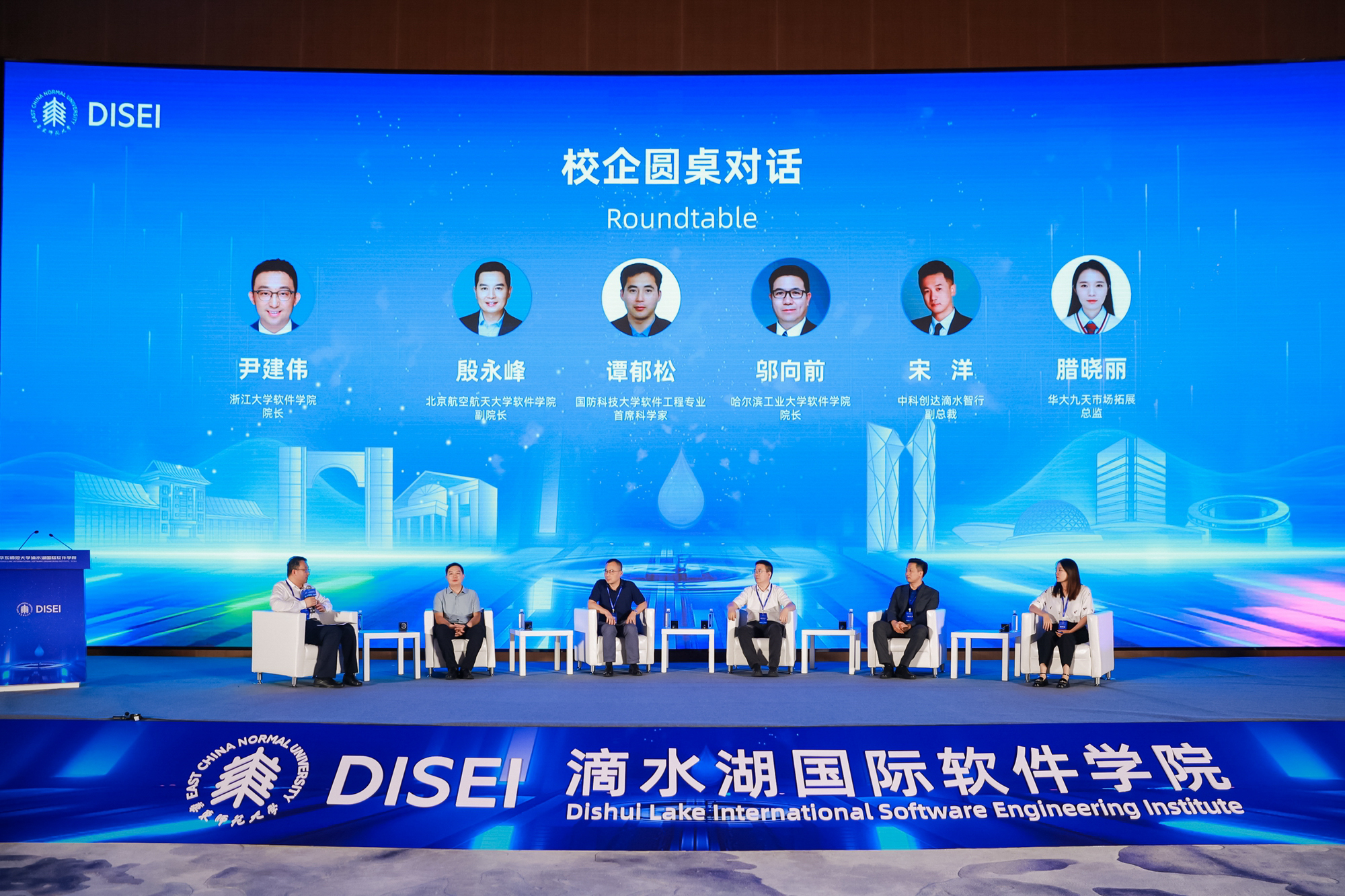 在下午的“产教融合论坛”上,10所高校对发布的关键软件技术产品进行了详细介绍。瑞典乌普萨拉大学王义教授、芯原微电子执行副总裁戴伟进带来了软件技术前沿报告。来自北京大学、北京航空航天大学、浙江大学的软件学院院长与华大九天、中科创达(滴水智行)企业负责人围绕产教融合话题展开了深入研讨。