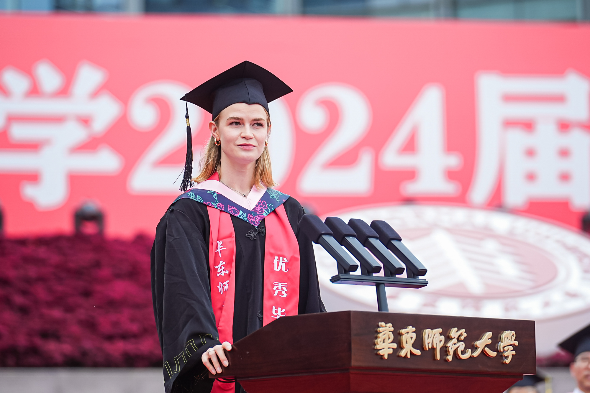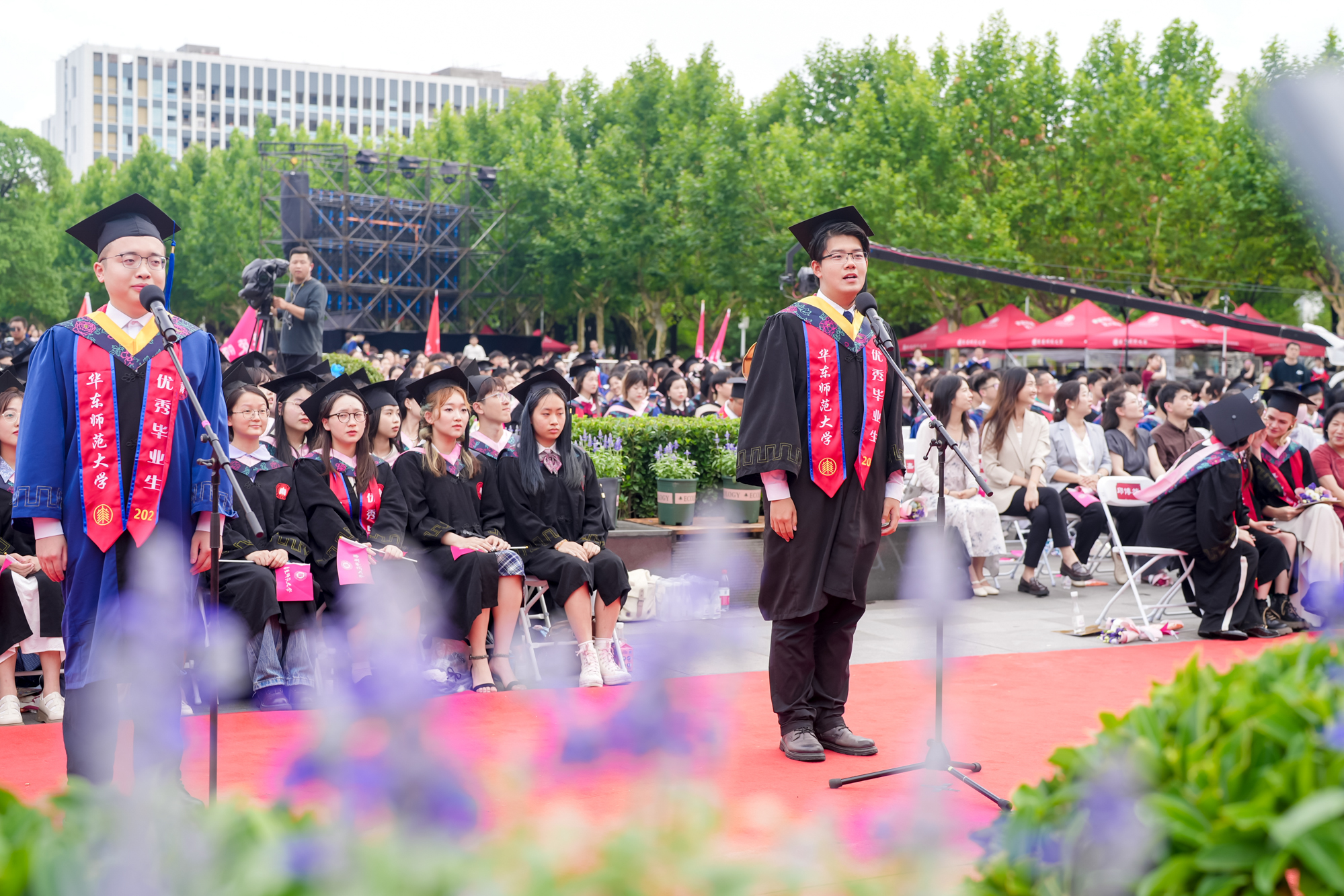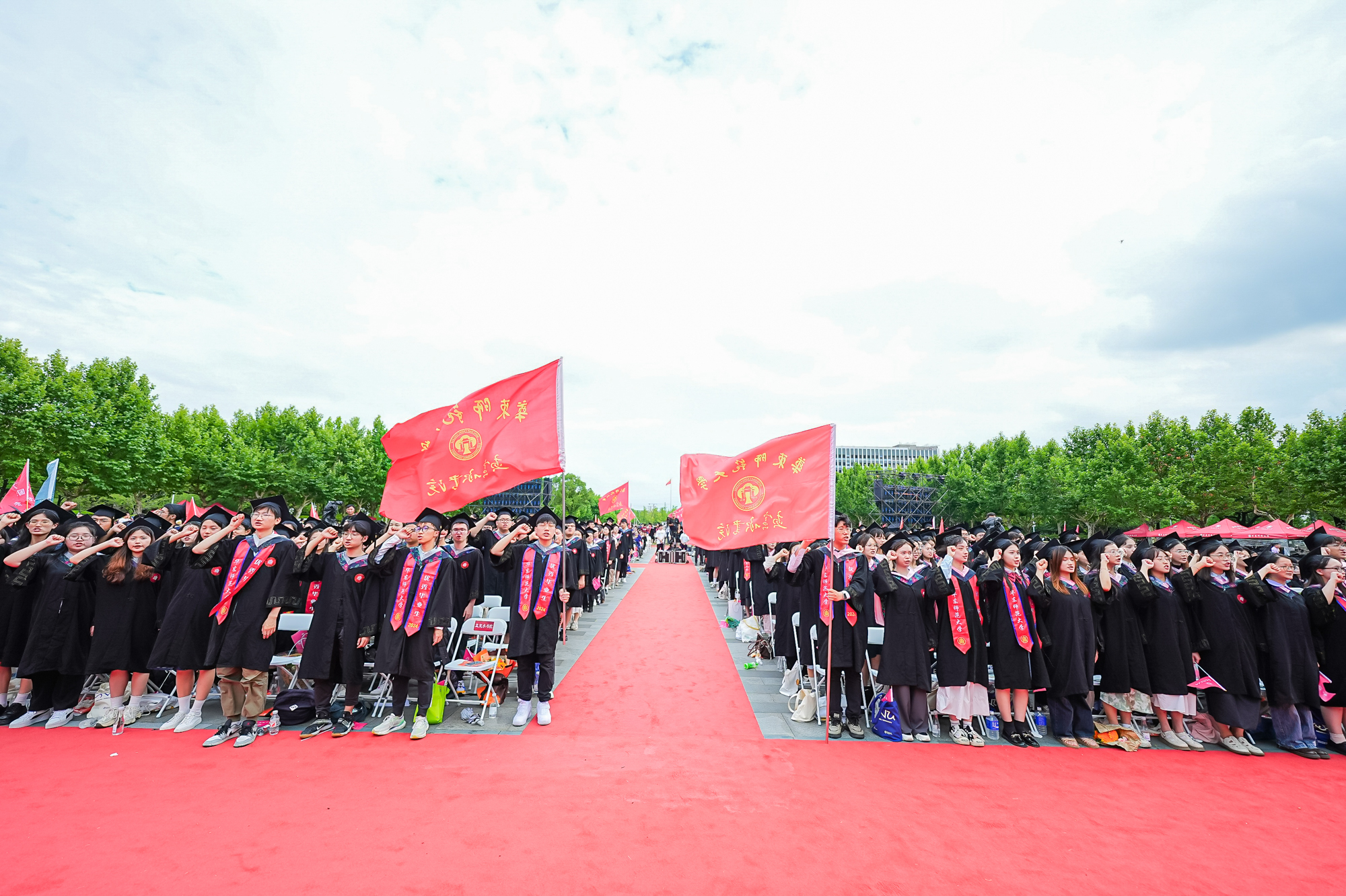 校领导梅兵、钱旭红、曹友谊、顾红亮、孟钟捷、程静,校学术委员会和各专门委员会负责人,学部、院系、书院负责人,机关职能部门和直属单位负责人,校友代表,教师代表,员工代表,毕业生亲友等出席典礼,一起见证师大学子完成学业开启人生新征程的重要时刻。