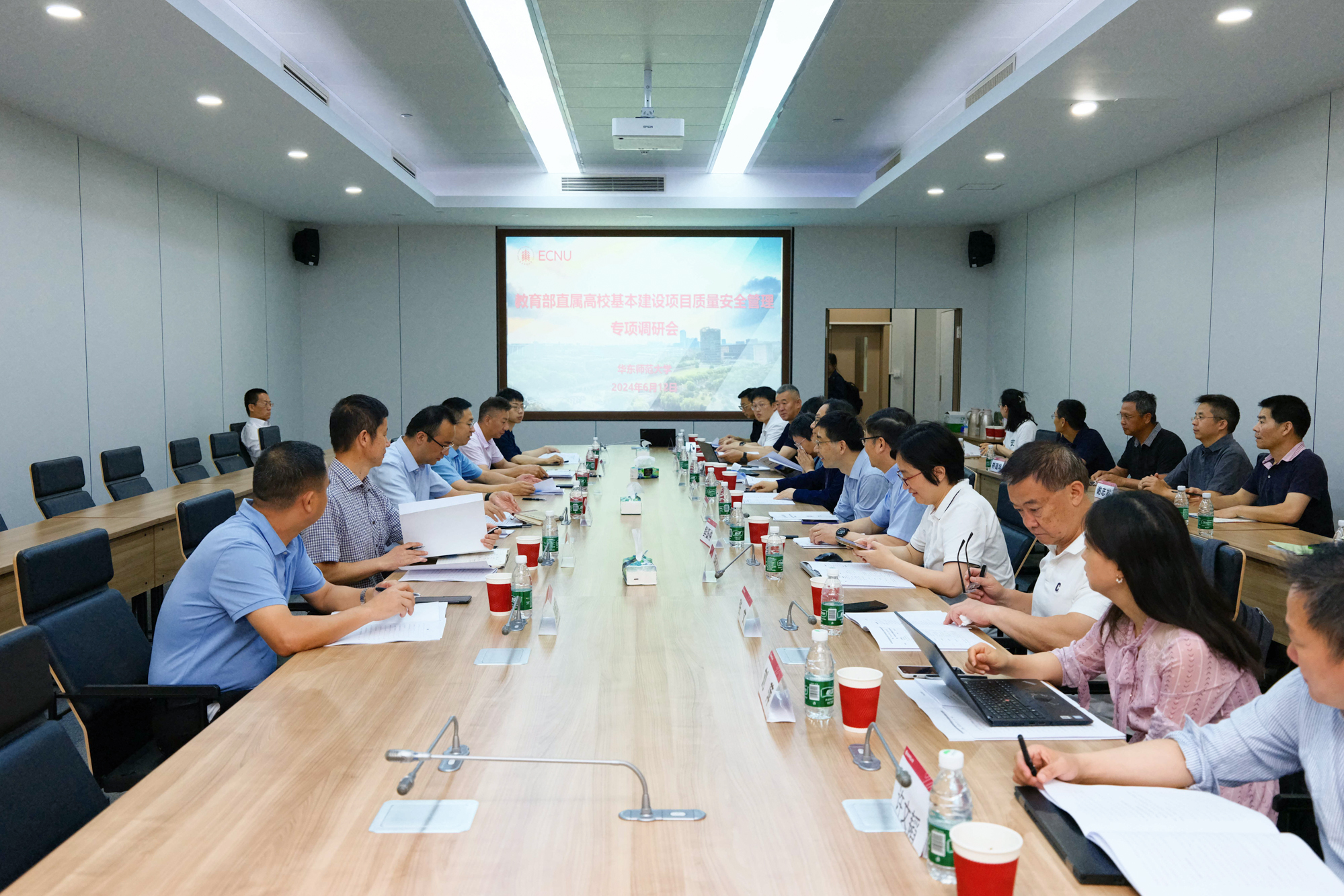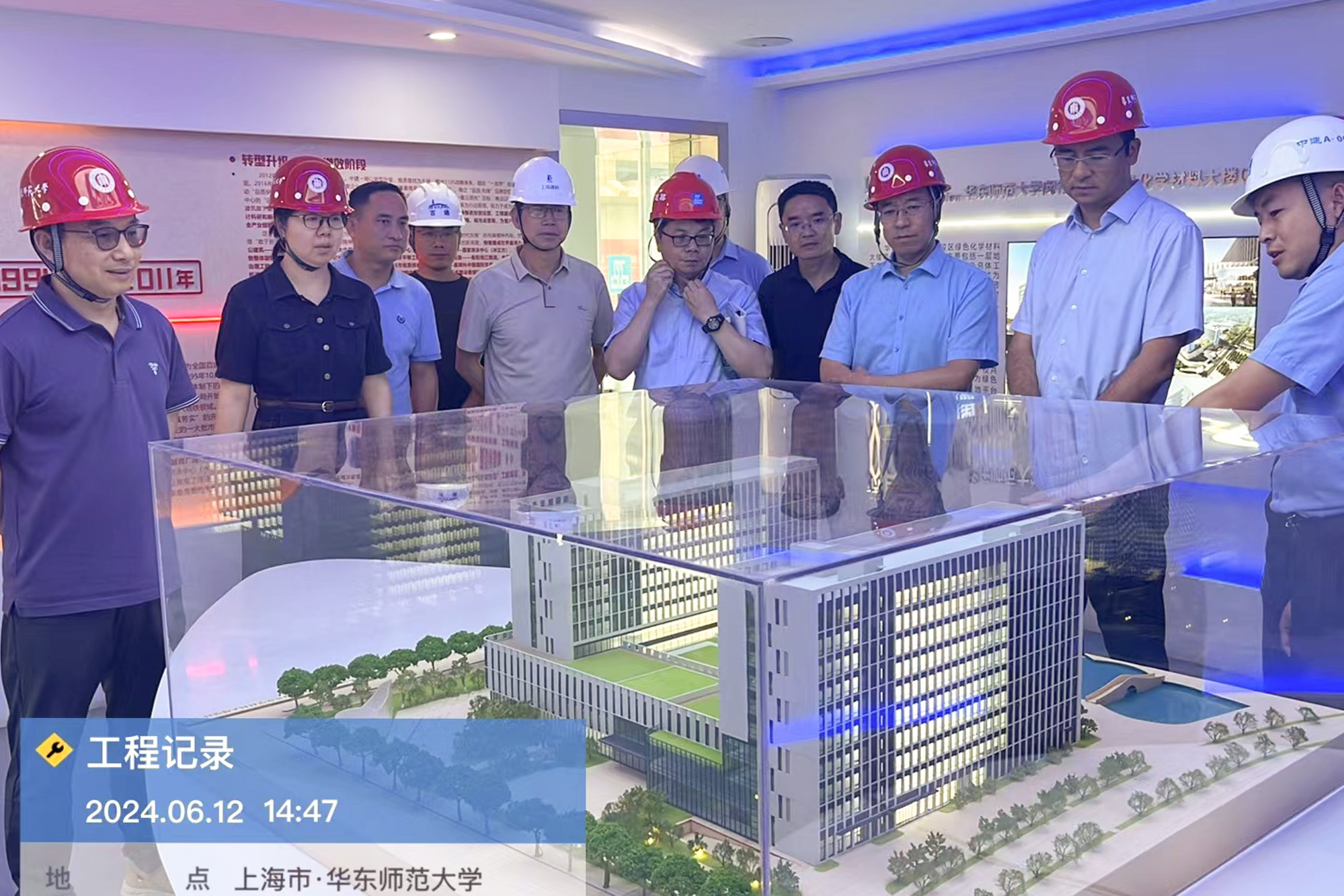 座谈会结束后,调研组专家查阅了学校基建领域制度建设及相关建设项目的档案资料,实地踏勘了普陀校区教育发展大楼与闵行校区绿色化学材料大楼两个在建项目。