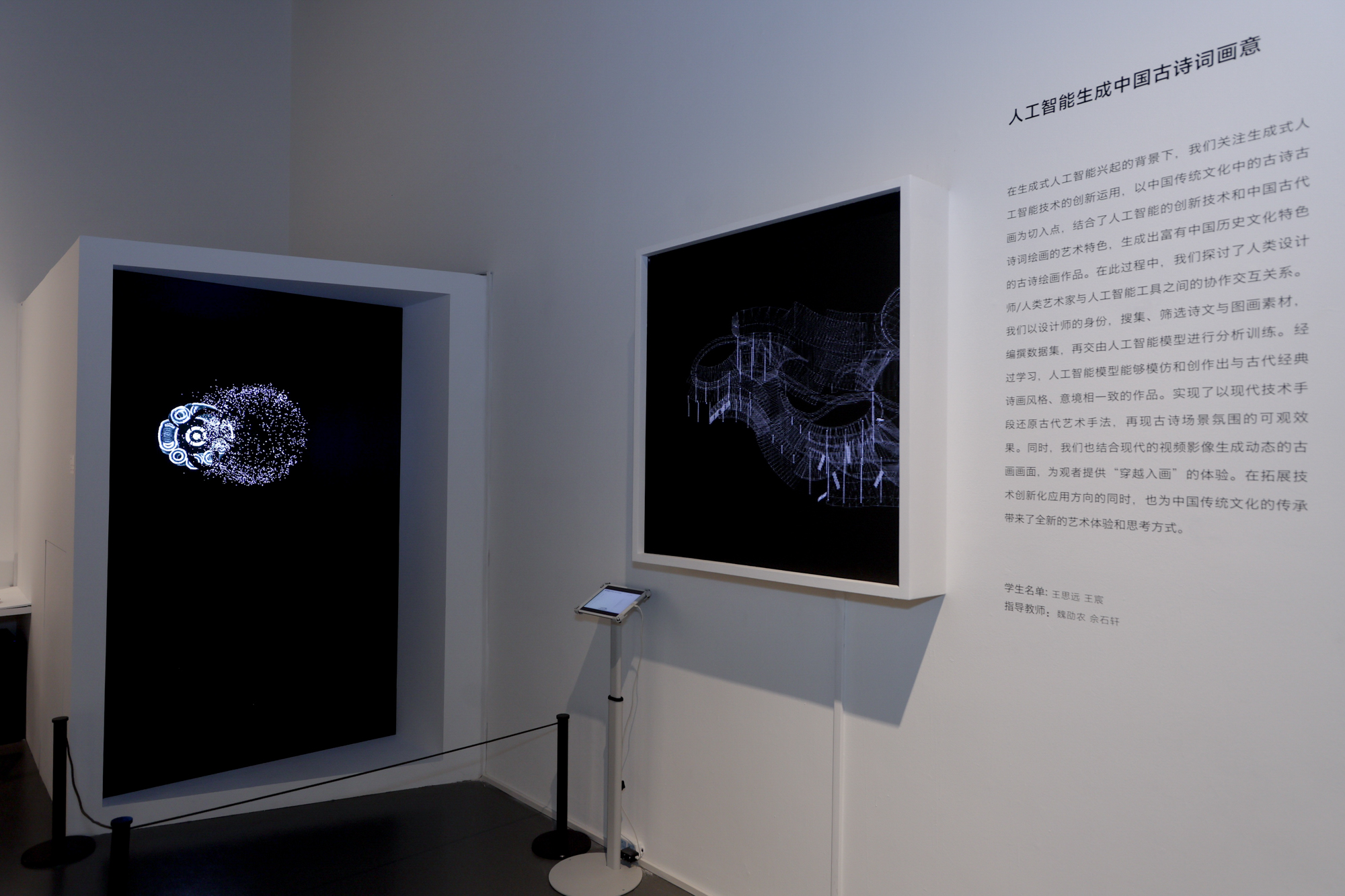 美术馆内呈现了人工智能主题设计,太空空间设计实验,乡村振兴品牌设计,建筑艺术研究等多方面的作品。