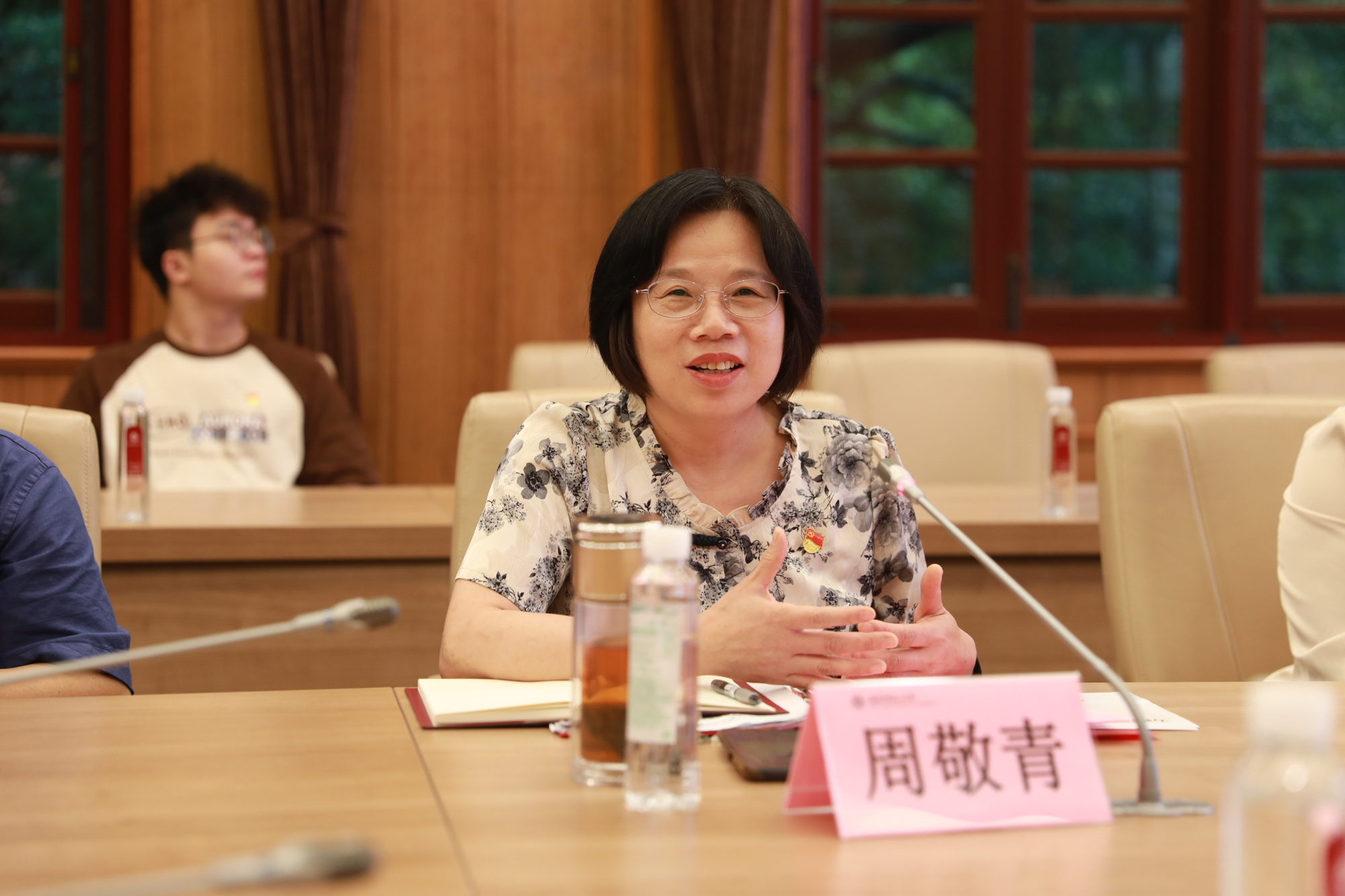 6月28日下午,“与微党课主讲人共话党史中的纪律建设”交流座谈会在普陀校区办公楼小礼堂举行,周敬青教授,校党委常委、组织部部长朱军文,党委学生(研究生)工作部副部长、心理健康与咨询中心主任庄瑜,党委巡察工作办公室吴月洁等教师党员以及来自教育学部、心理与认知科学学院等院系的39位学生党员一起参加了交流座谈,会议由党委组织部副部长谭红岩主持。