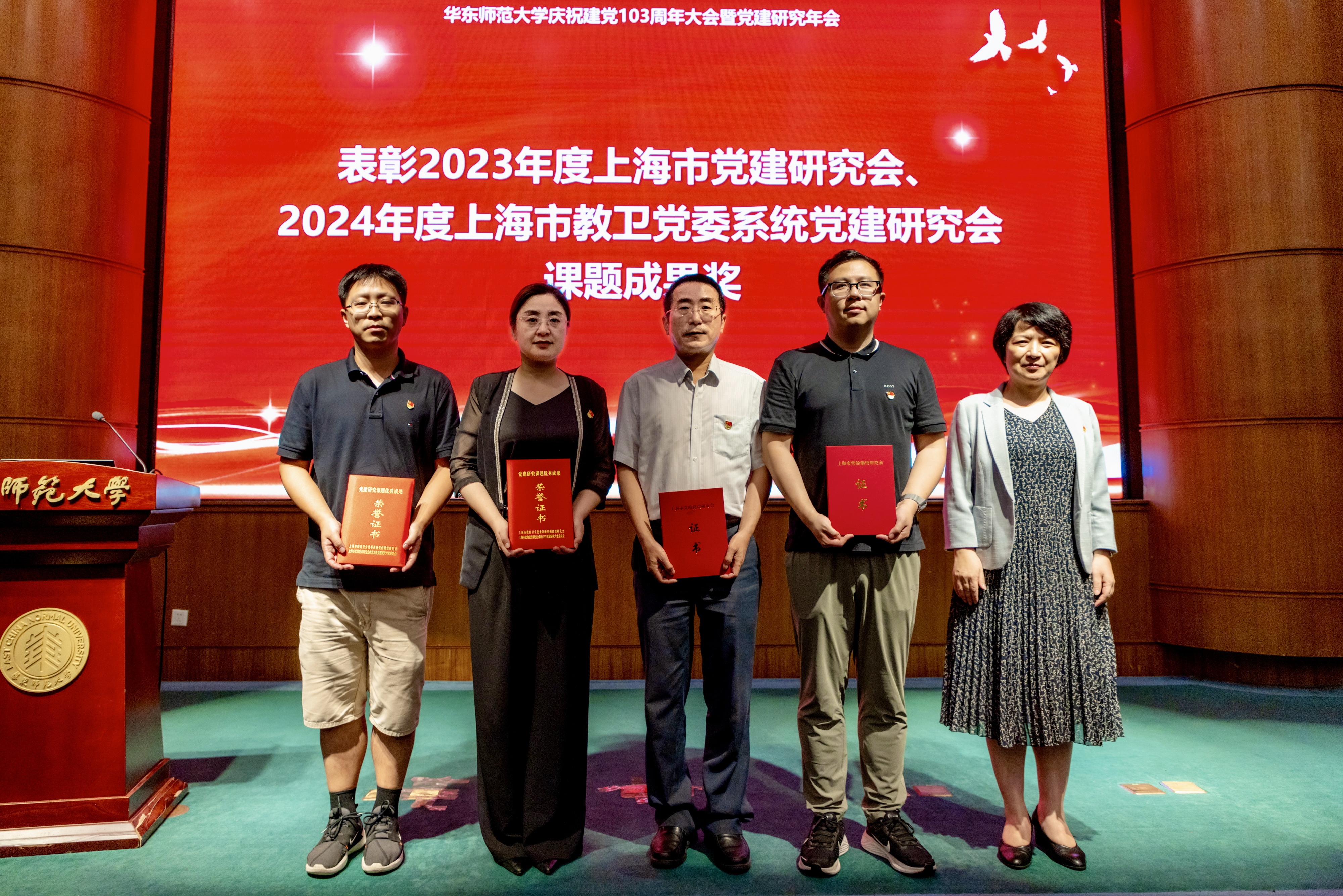 校党委书记梅兵为获得2023年度上海市党建研究会、2024年度上海市教卫党委系统党建研究会课题优秀成果的项目颁奖
