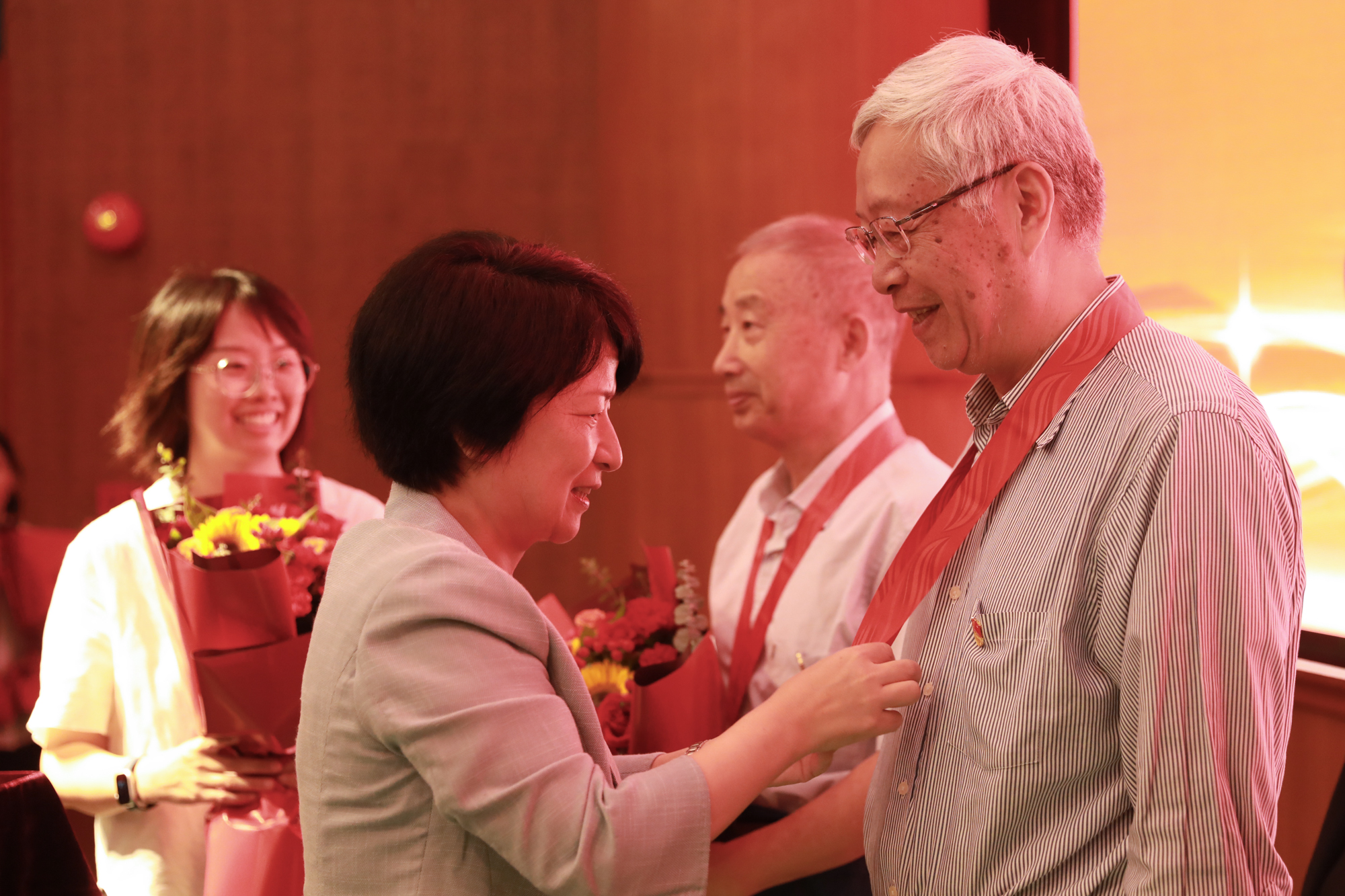 校党委书记梅兵为老同志颁发“光荣在党50年”纪念章