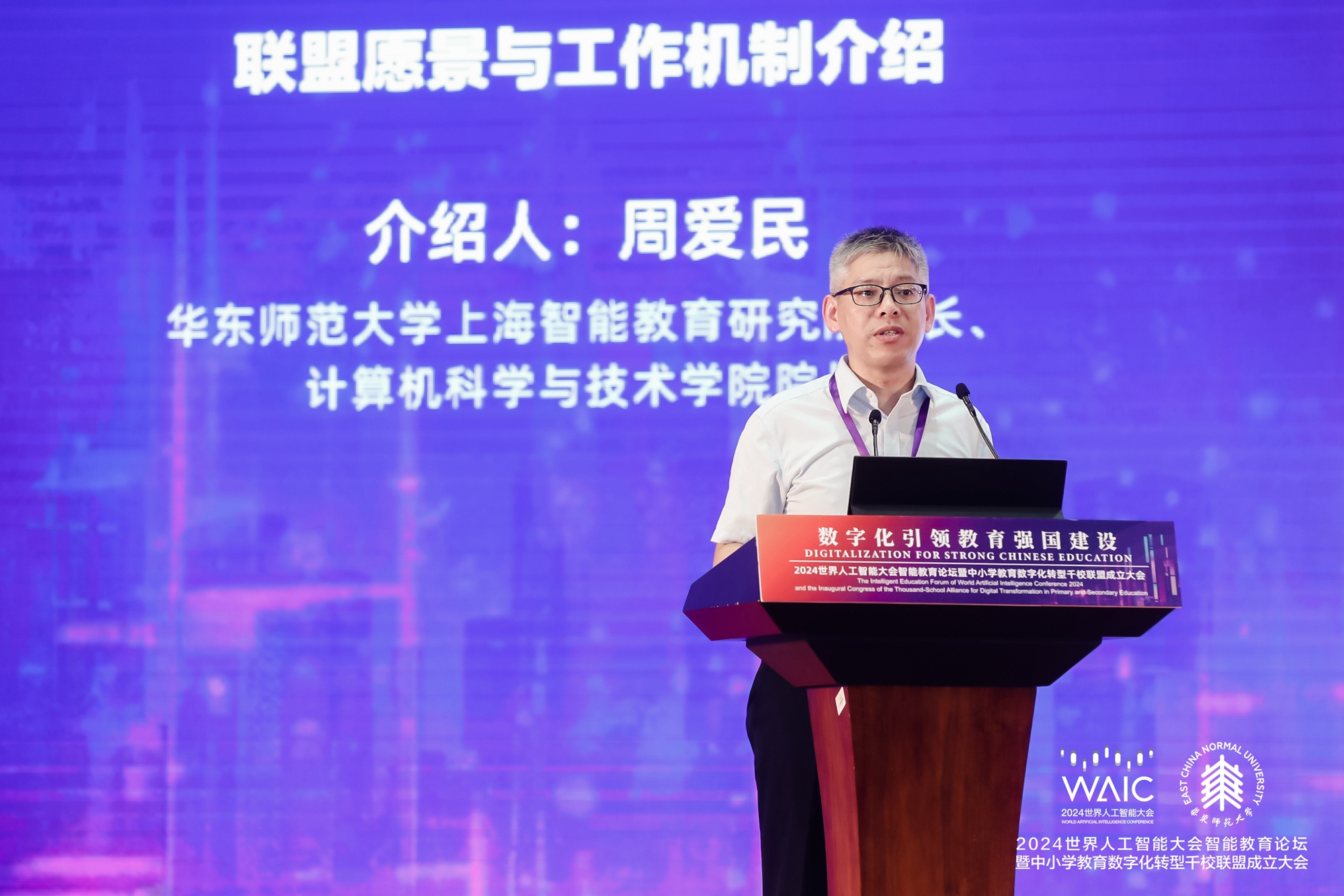 完美网页版上海智能教育研究院院长、计算机科学与技术学院院长周爱民介绍联盟愿景与工作机制