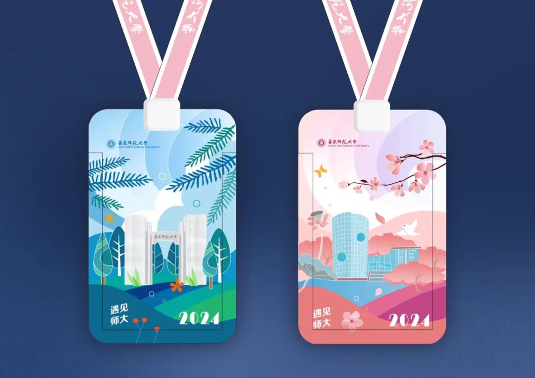 初见师大,将师大美景随身携带吧!新生定制校园卡套分为两款,随机发送。蓝色款融入了普陀校区的标识性建筑——中山北路校门和校树水杉,红色款则包含了闵行校区图书馆及校花荷花、樱花林等元素。