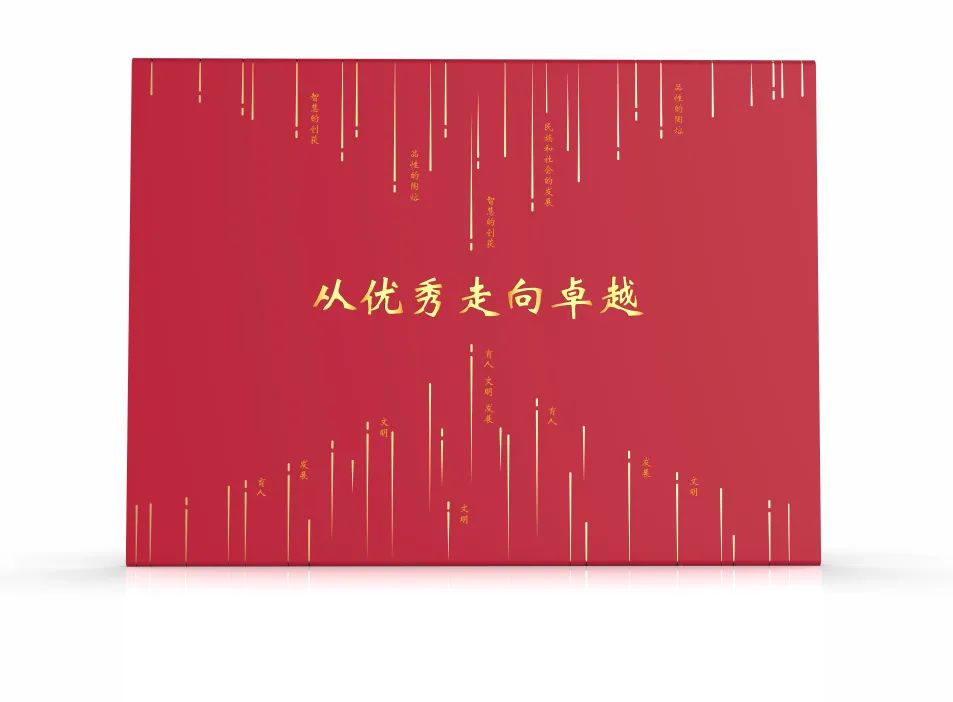 封套背面主体为“从优秀走向卓越”文字,以“超限制造”为理念,在上下两侧超快激光,光束的艺术化阵列排列下照亮了这条从优秀走向卓越的奋进之路。