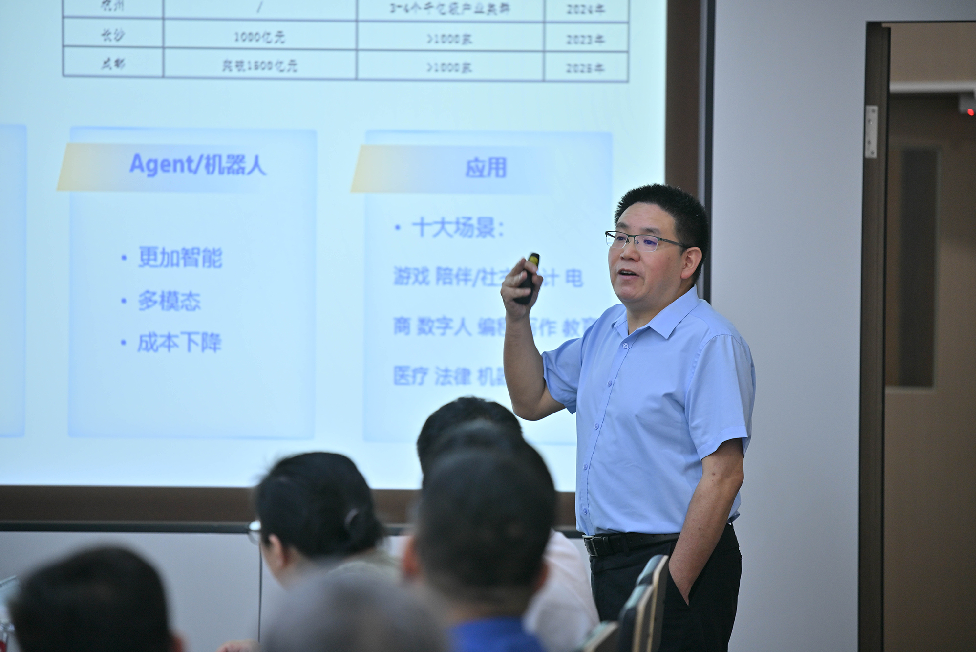 民进完美网页版委员会主委周立旻介绍“民进完美网页版新质生产力实践基地”相关情况