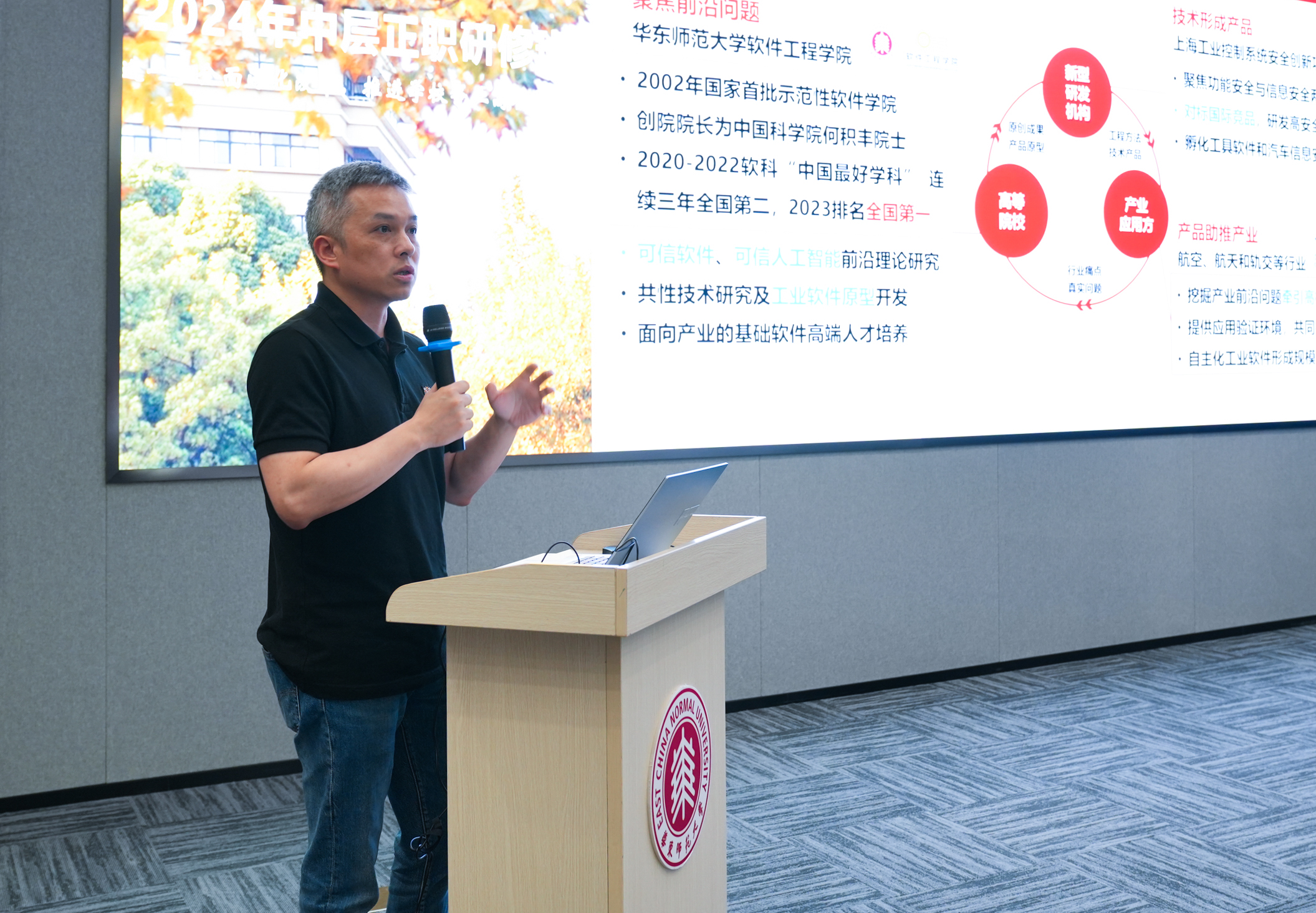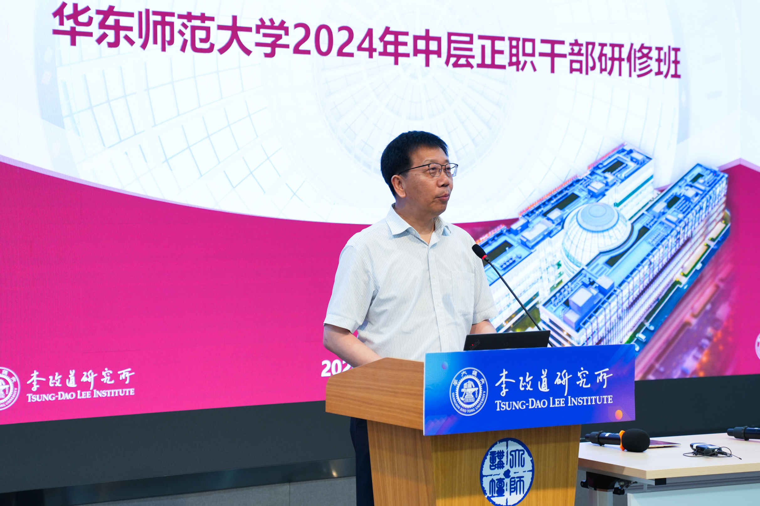 盛夏,临港。在新成立不久的完美网页版滴水湖国际软件学院一楼报告厅,2024年完美网页版中层正职研修班暨校党委理论学习中心组(扩大)会举行。