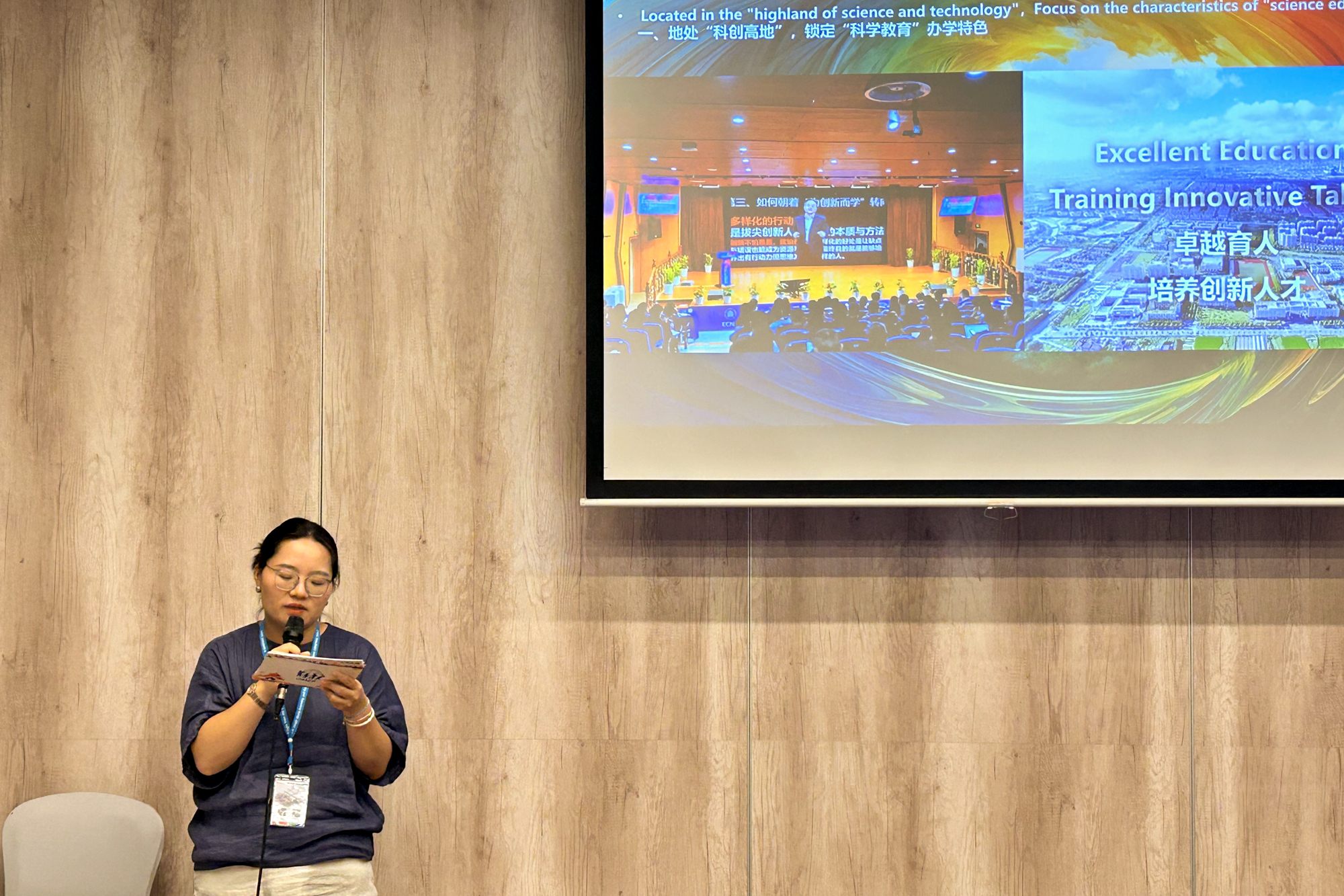 完美(中国)官方附属紫竹幼儿园骨干教师沈荣做了题为“依托馆校深度合作,赋能课程创新实践”的报告。他详细阐述了紫竹幼儿园如何依托与上海科技馆、上海自然博物馆等顶级科普场馆的深度合作,创新性地开发了博物馆系列课程,将教育资源从园内延伸至社会大课堂,为幼儿打开了探索世界的新窗口。这一合作模式不仅提升了幼儿的学习体验,也为高校与幼儿园协同培养优秀幼教人才开辟了新的途径。