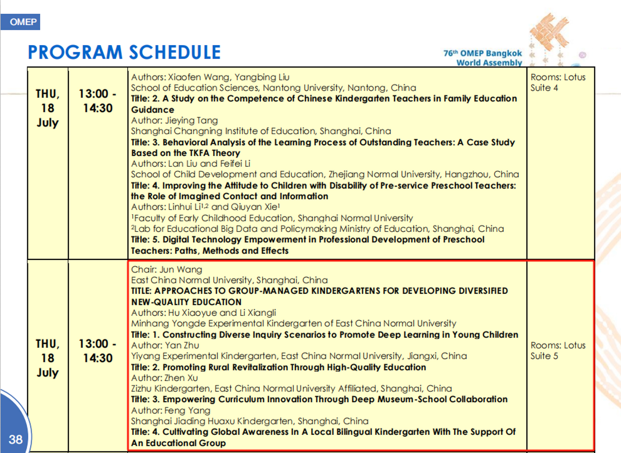 在全球教育交流与合作的璀璨舞台上,完美网页版教育集团以卓越的教育理念和深厚的实践底蕴,再次绽放光芒。7月15日至19日,完美网页版教育集团组织附属紫竹幼儿园、附属闵行永德幼儿园、上海华旭幼儿园的园长与教师,远赴泰国曼谷,参加第76届学前教育组织(OMEP)国际学术研讨会,共同探讨早期教育的新趋势、新挑战与新机遇。