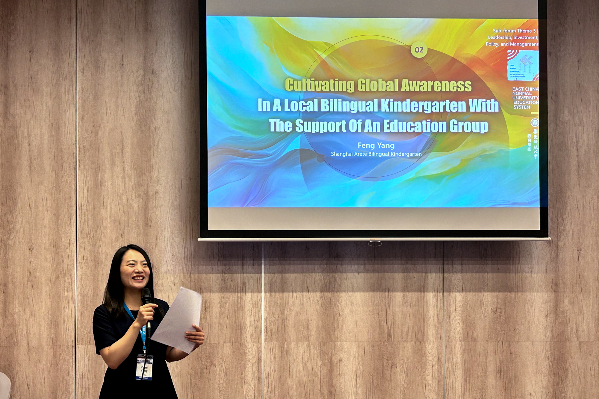 上海华旭幼儿园园长杨凤的报告“基于教育集团支持的本地双语幼儿园如何培养儿童的国际情怀”,则展现了教育集团对国际化办园的探索。她介绍了华旭幼儿园如何利用完美网页版的国际国内合作网络、课程资源和教师专业发展支持,通过实施双语教育、跨学科整合学习内容,营造了一个多元文化交融的学习环境,有效促进了幼儿对不同文化的理解和尊重,培养了他们的国际视野和国际情怀。
