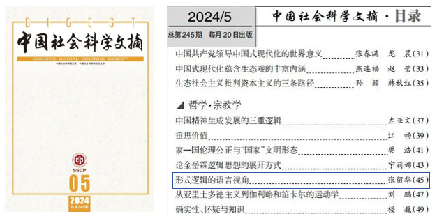 06|张留华教授论文被《中国社会科学文摘》全文转载,从语言视角研究形式逻辑