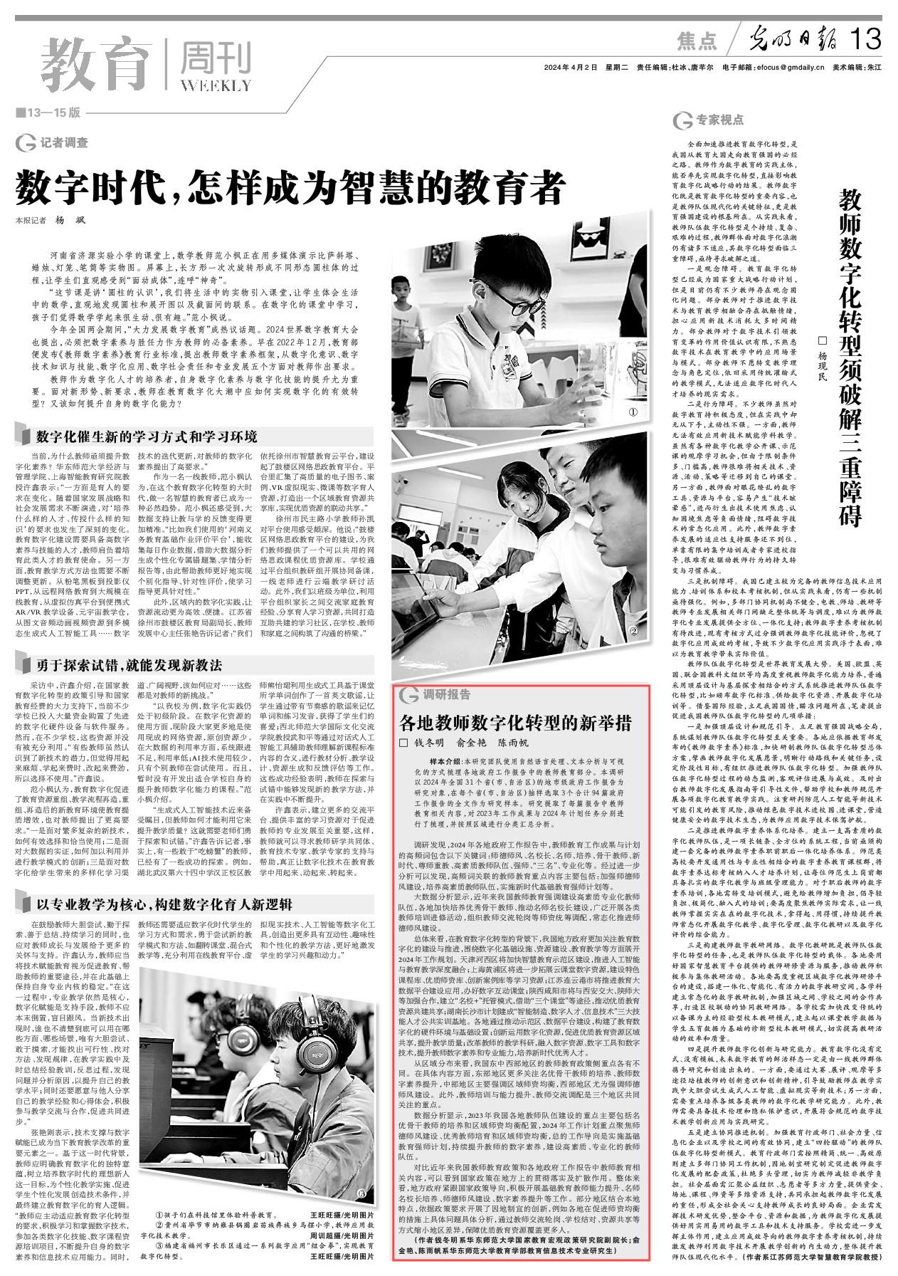 08|钱冬明教授团队在《光明日报》发文,探讨各地教师数字化转型的新举措