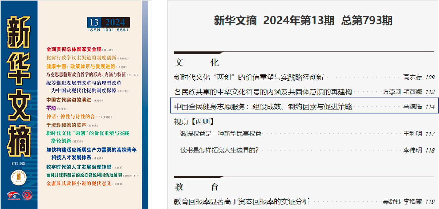02|马德浩教授文章被《新华文摘》全文转载,探讨中国全民健身志愿服务的建设成效、制约因素与促进策略