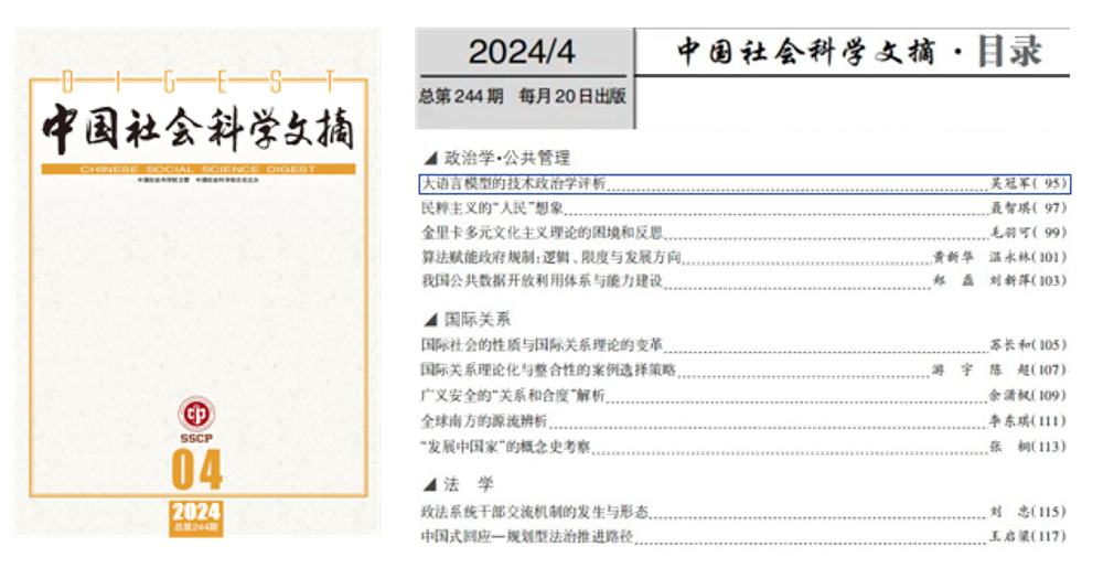05|吴冠军教授论文被《中国社会科学文摘》全文转载,评析大语言模型的技术政治学