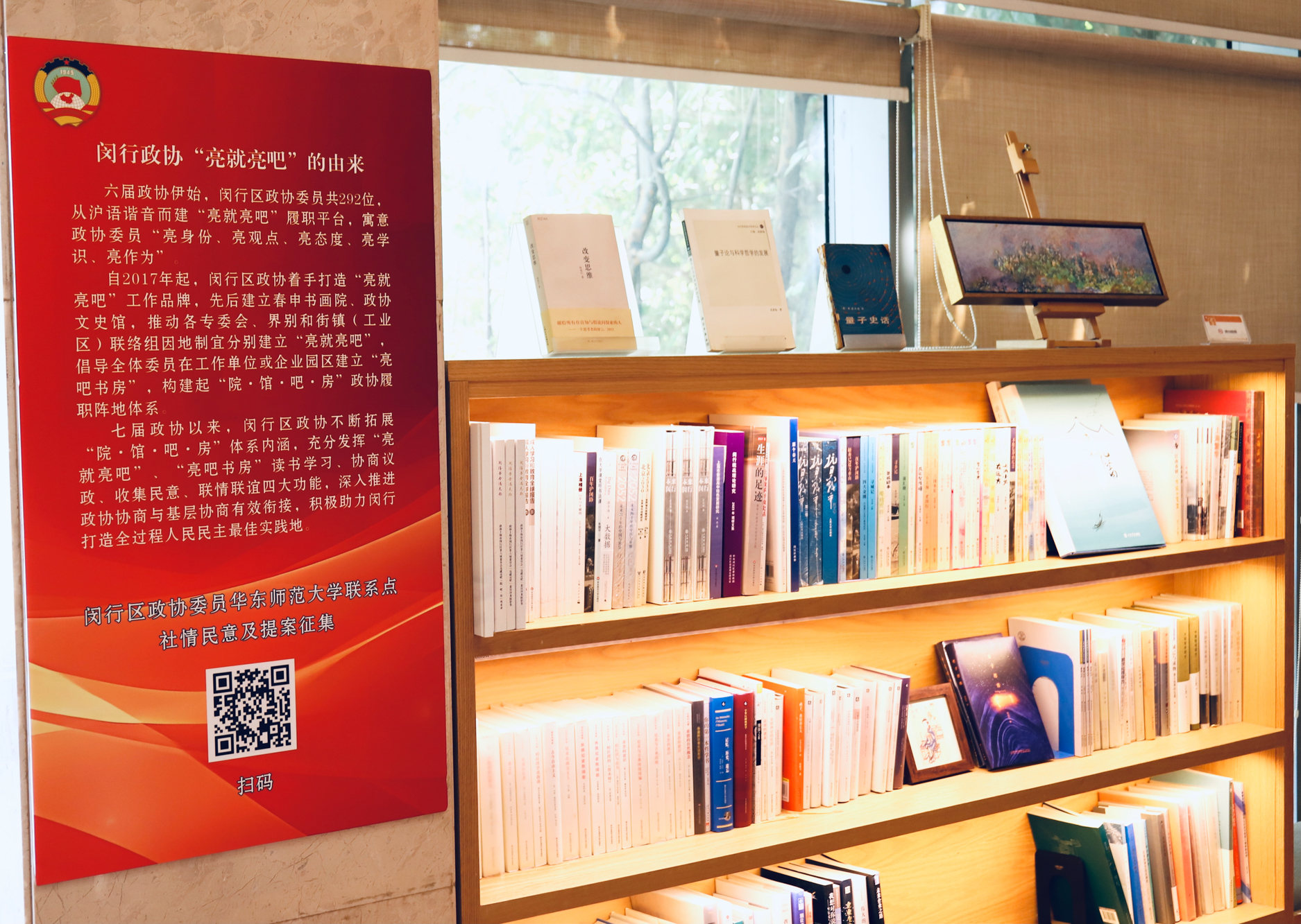 “亮就亮吧”是闵行区政协自第六届委员会起,为政协委员“亮身份、亮观点、亮态度、亮学识、亮作为”设立的一个工作平台。为了更好的打造“亮就亮吧”的品牌,先后形成了“院、馆、吧、房”等政协委员的履职阵地。此次在华师大教师之家知先堂设立的“亮吧书房”,汇聚完美(中国)官方的学术高地的特色,打造政协委员在校内的联系点,收集教师、学生和社区居民的社情民意、提案和议案,委员们精心布置,特意在书房一角留下了征集意见的二维码。