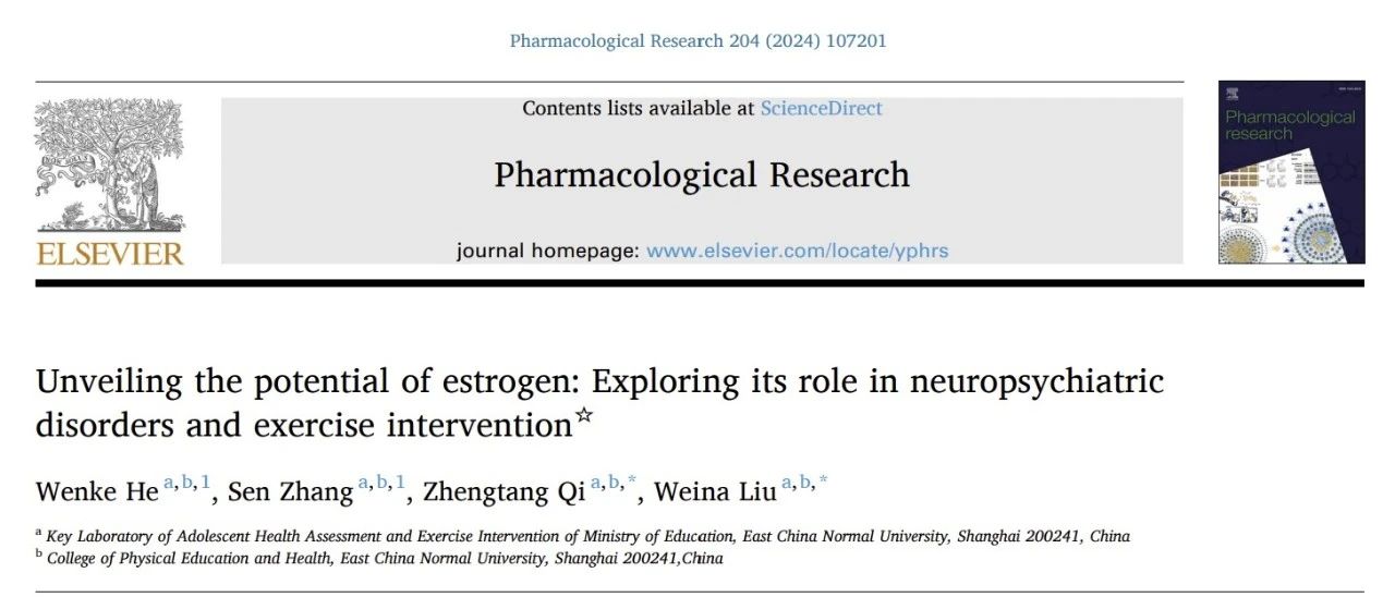 体育与健康学院刘微娜教授团队在药理学期刊Pharmacological Research发表文章,跳出雌激素作为性激素参与维持性发育的传统视角,重点关注雌激素在神经系统中的作用潜力,解释了神经精神疾病性别差异的激素起源及雌激素类药物在疾病治疗中的作用,提出雌激素作为运动的性别特异性反应的原因之一会影响运动干预的效果。