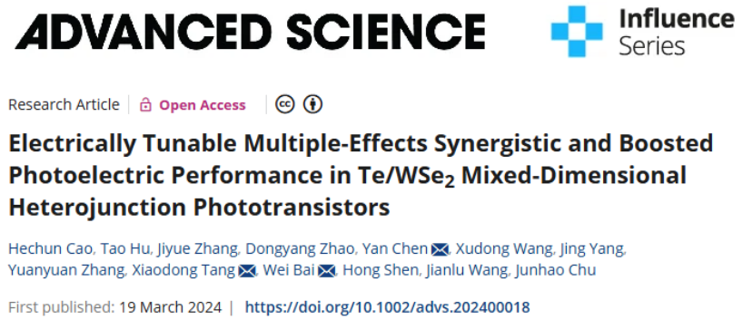 该成果以Electrically Tunable Multiple-Effects Synergistic and Boosted Photoelectric Performance in Te/WSe2 Mixed-Dimensional Heterojunction Phototransistors为题发表在Advanced Science期刊上。