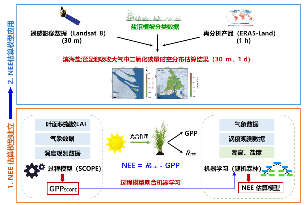 滨海湿地生态系统能吸收多少大气中的二氧化碳(CO2),这是面向国家碳中和,实现滨海蓝碳有效管理的重要科学问题之一。近期,河口海岸学国家重点实验室黄颖副研究员团队提出了滨海盐沼湿地高时空分辨率净生态系统CO2交换量的估算方法,实现了滨海盐沼湿地CO2吸收/排放量动态监测由点向面的跨越,相关成果以Capturing the net ecosystem CO2 exchange dynamics of tidal wetlands with high spatiotemporal resolution by integrating process-based and machine learning estimations为题,发表在Agricultural and Forest Meteorology上。